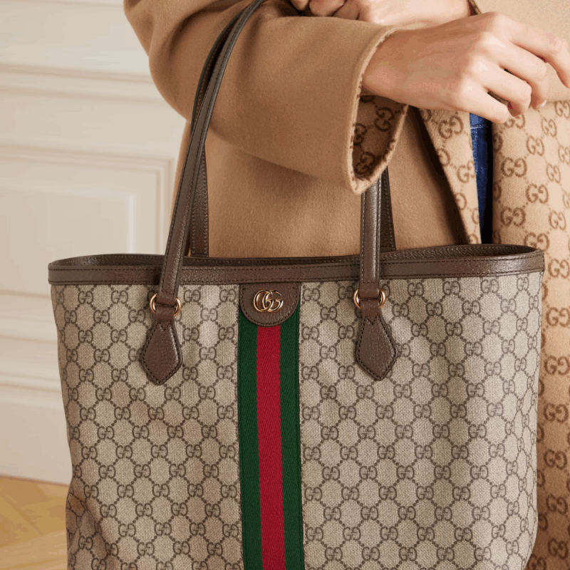 With recognizable design elements in a practical new shape, Ophidia new large sized tote is trimmed with textured leather and topped with Double G hardware. Thanks to its long leather handles, the style can also be carried as a shoulder bag.