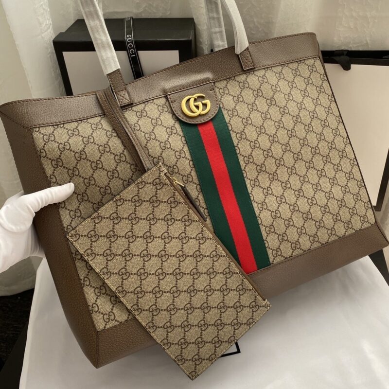 - Trimmed in textured leather and topped with Double G hardware