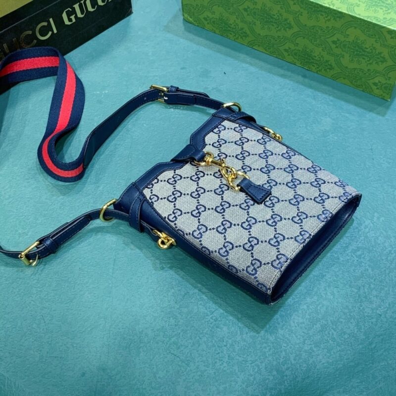 Gucci Original GG Small Bucket Shoulder Bag Beige And Blue 19 cm / 7.5 inches