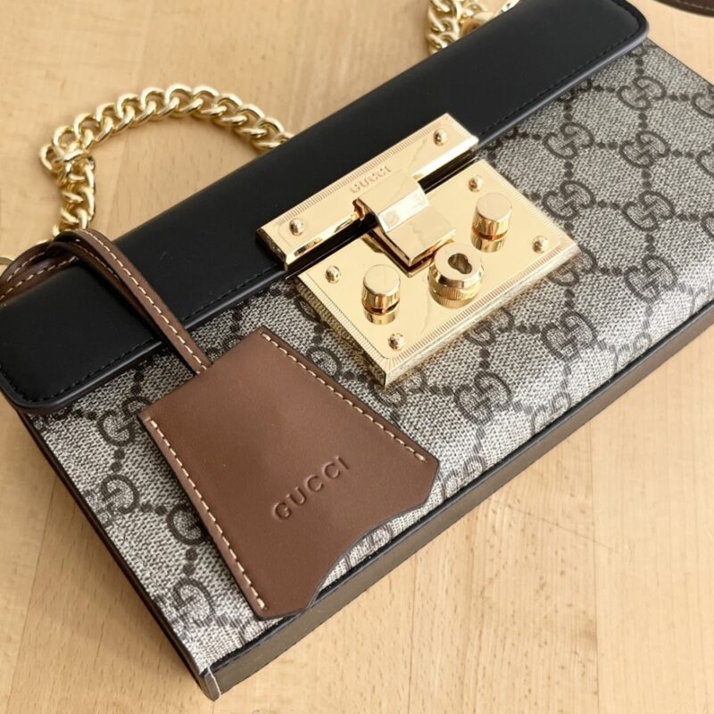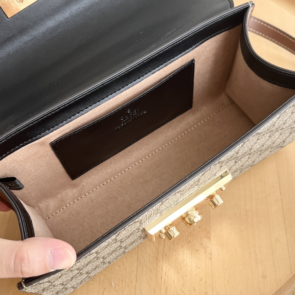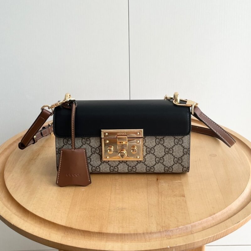 GUCCI PADLOCK SMALL SHOULDER GG SUPREME CANVAS BLACK 22CM ‎735103 KLQJG 9785