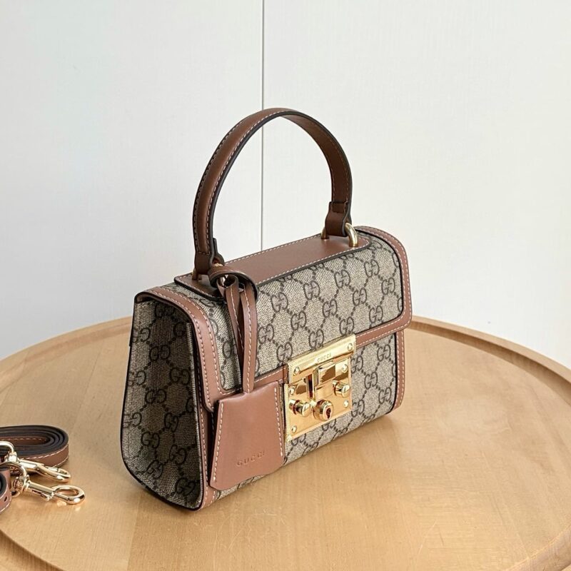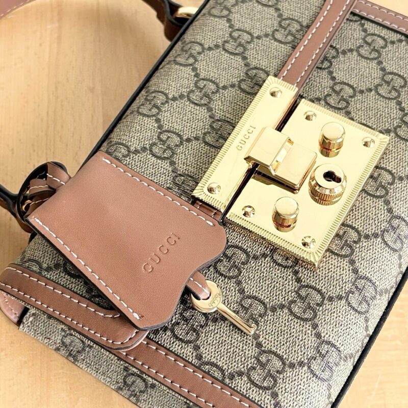 - Padlock closure, with key in leather holder