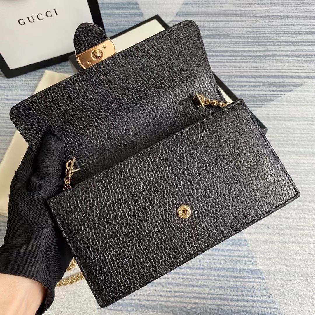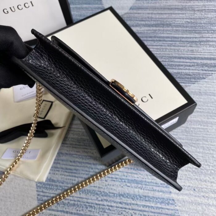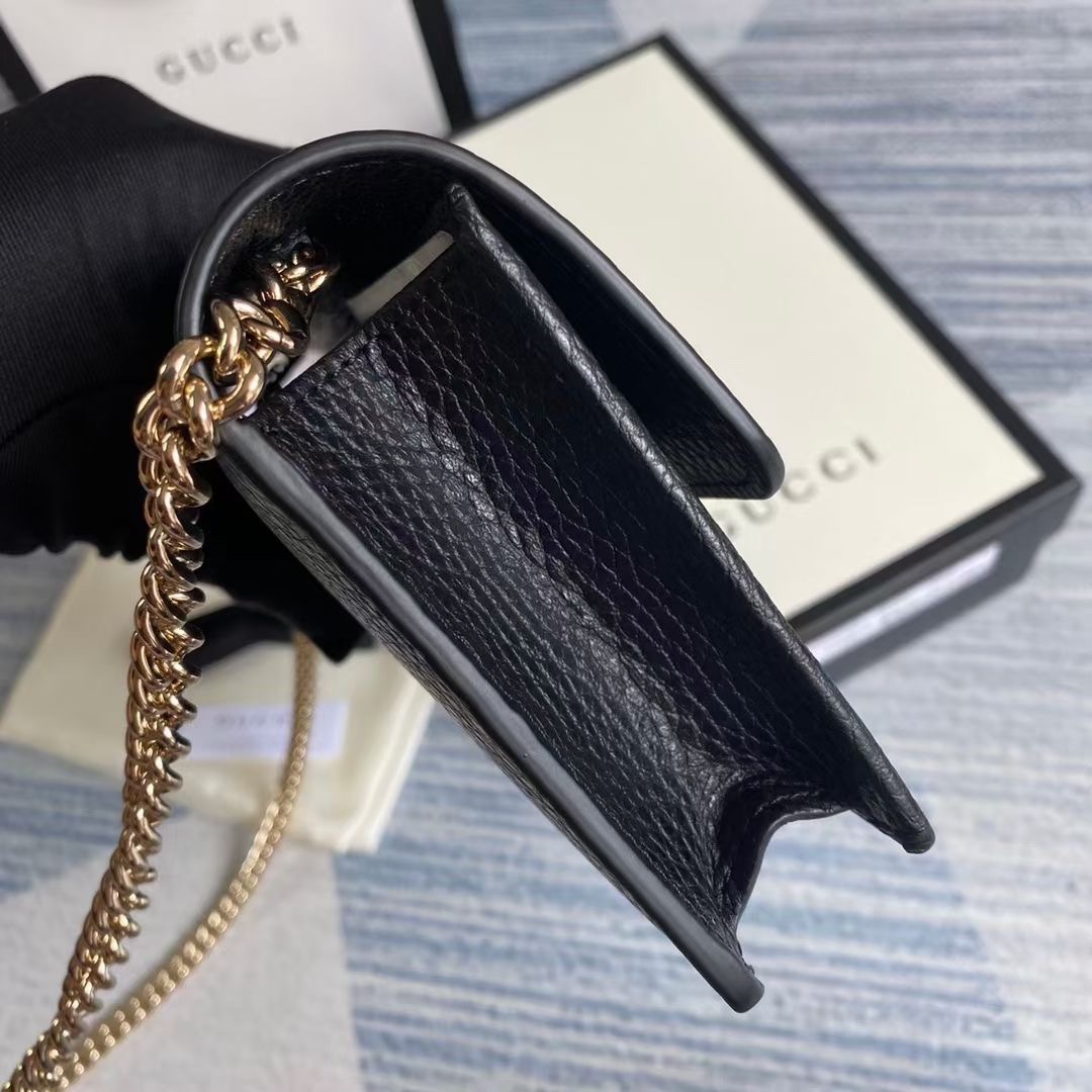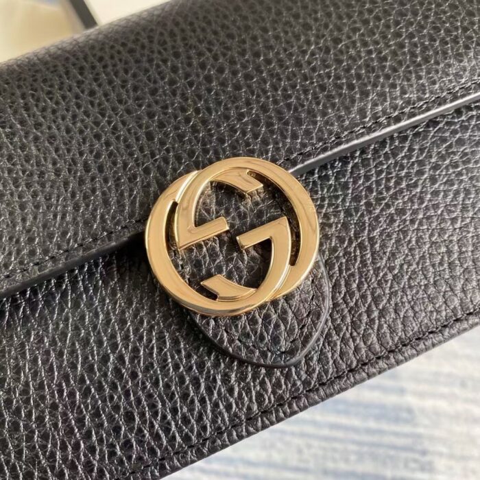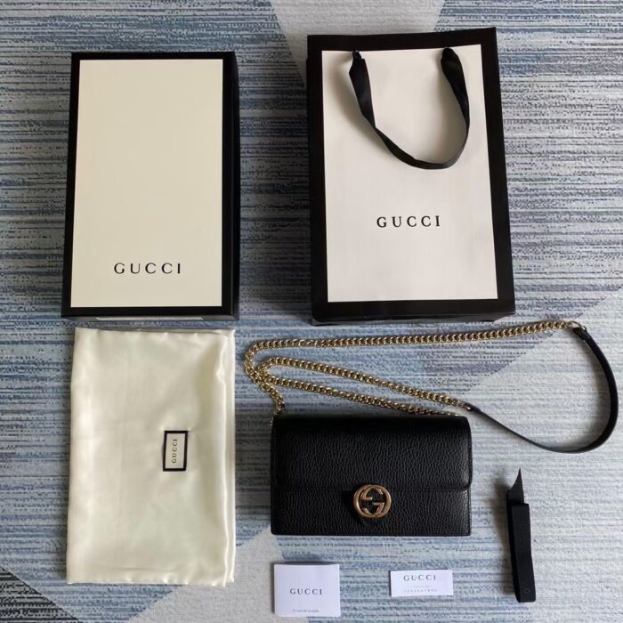 GUCCI PEBBLED BLACK LEATHER INTERLOCKING G WALLET ON CHAIN CLUTCH BAG 20CM
