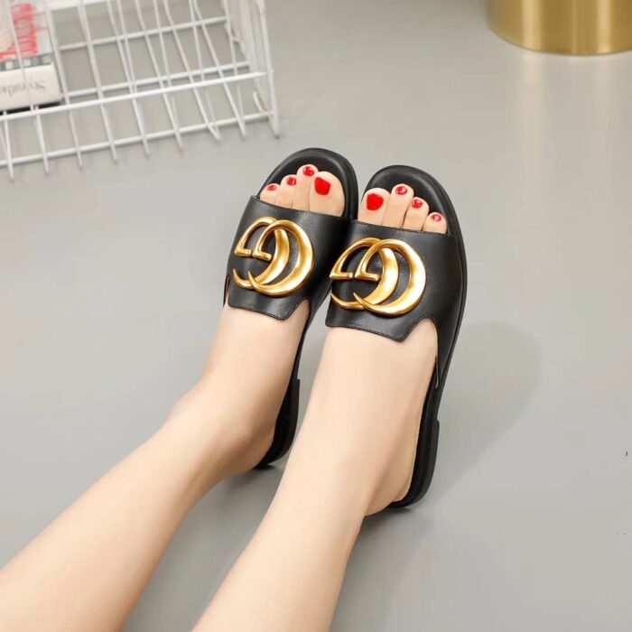 GUCCI PRINCETOWN GG SLIPPERS LEATHER BLACK