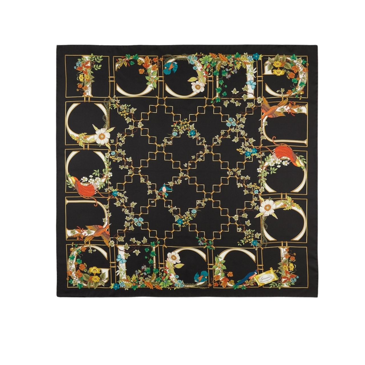 GUCCI PRINT SILK TWILL CARRÉ ANIMAL AND FLORAL BLACK 90CM 777353 3G001 1000