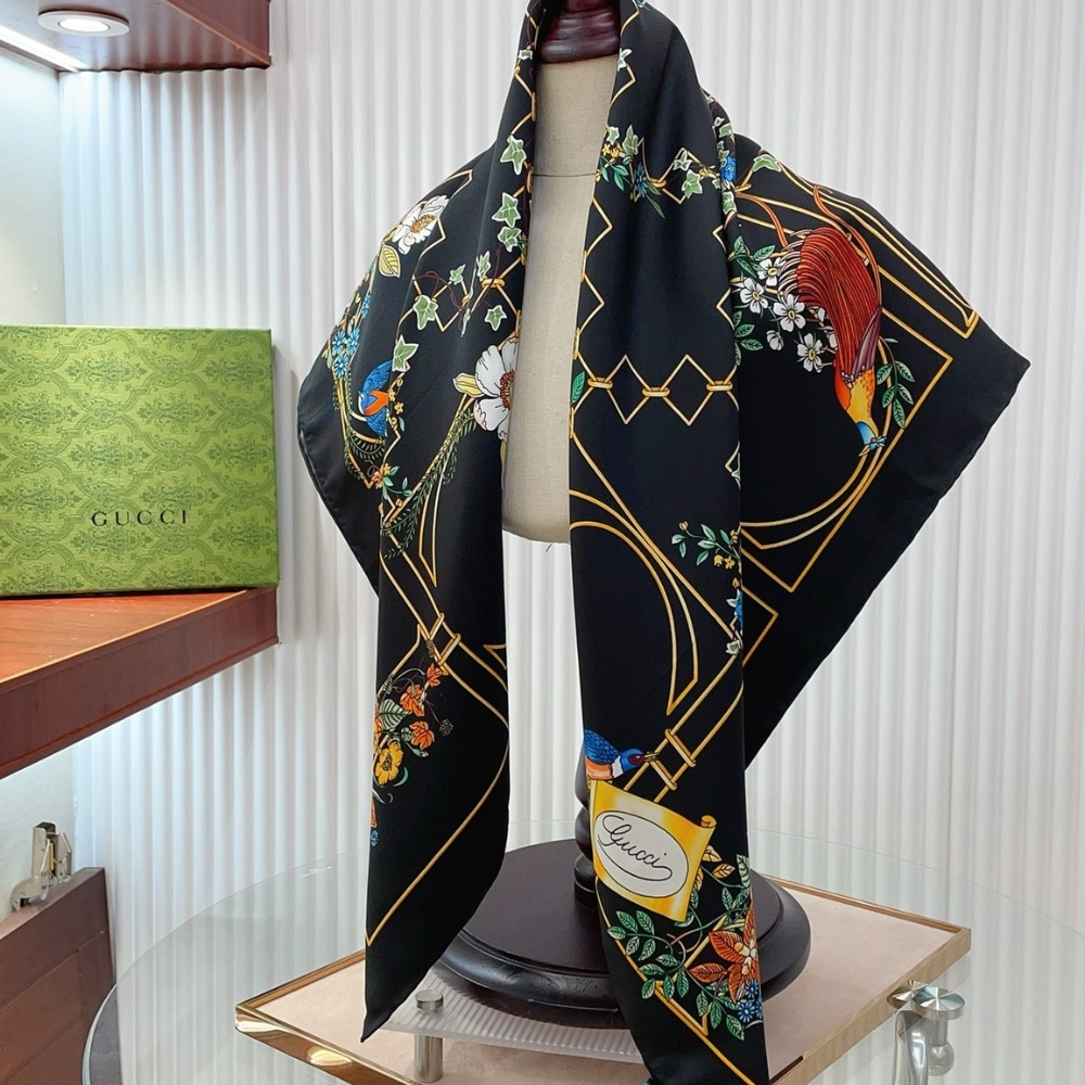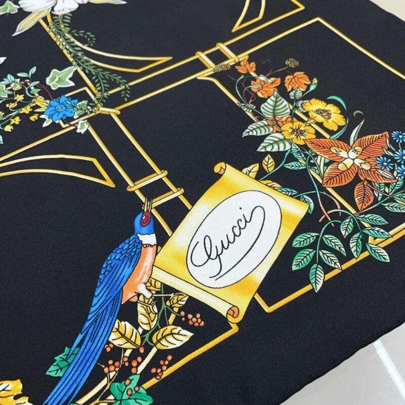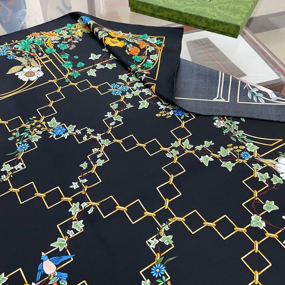 Gucci Print Silk Twill Carre Animal And Floral Black  777353 3G001 1000 / 90cm / 35.4 inches