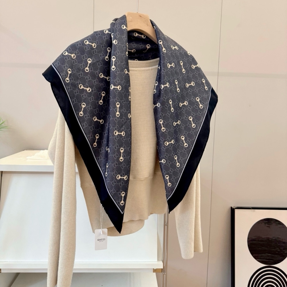 Gucci Printed Silk Carré Gold GG In Black 662576 3G001 1000