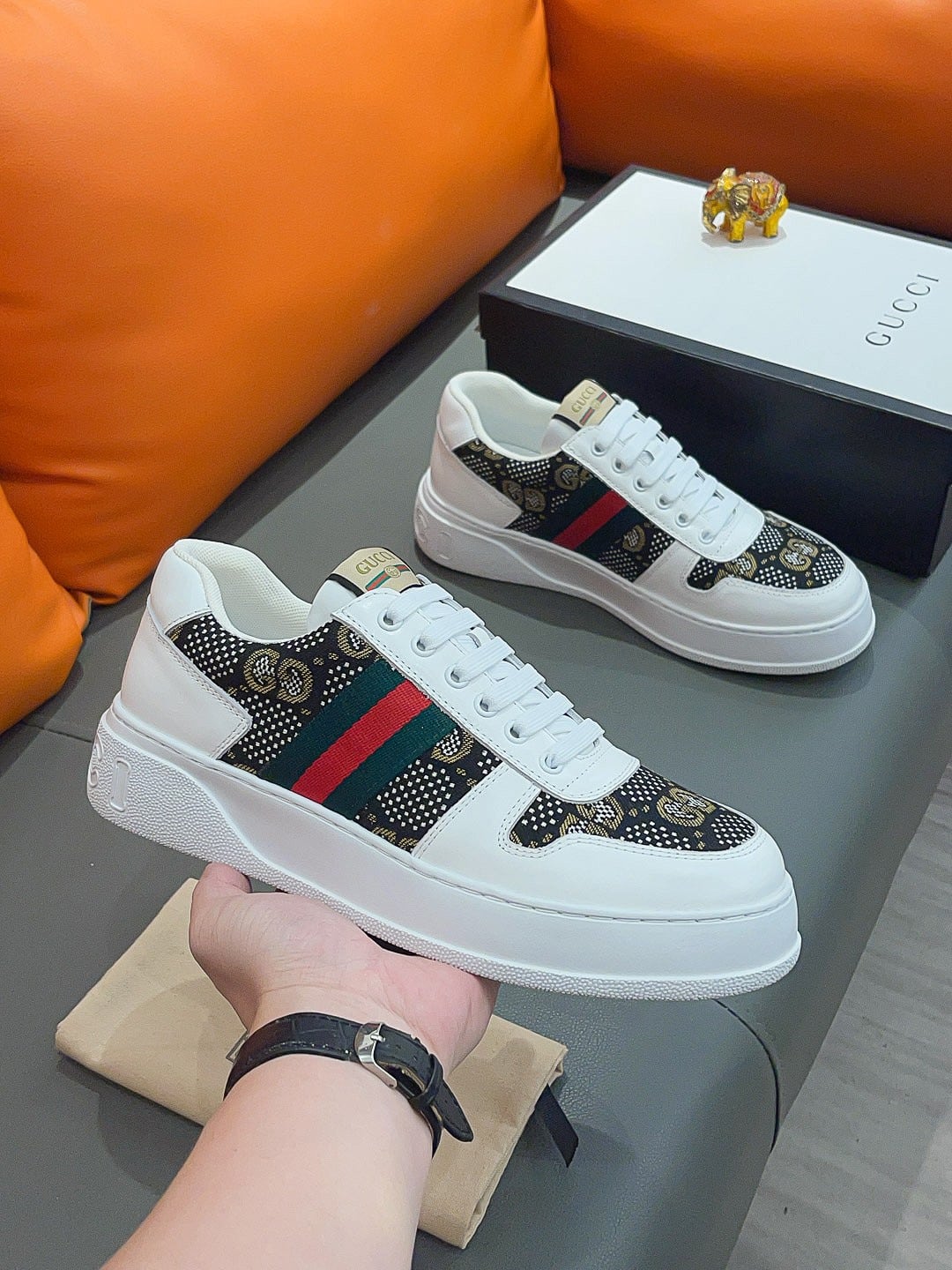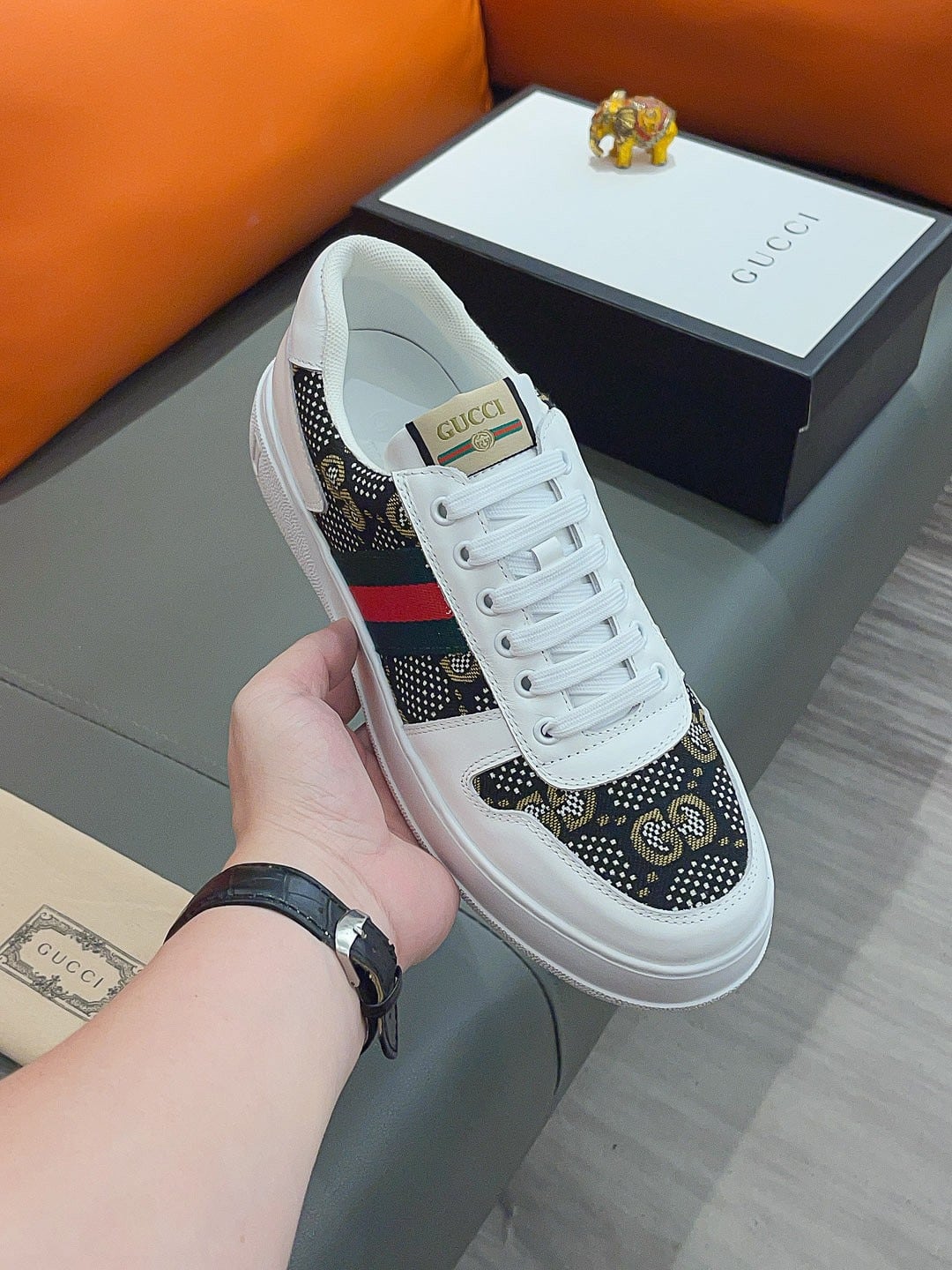 GUCCI SCREENER GG HIGH TOP SNEAKER IN WHITE AND BLACK