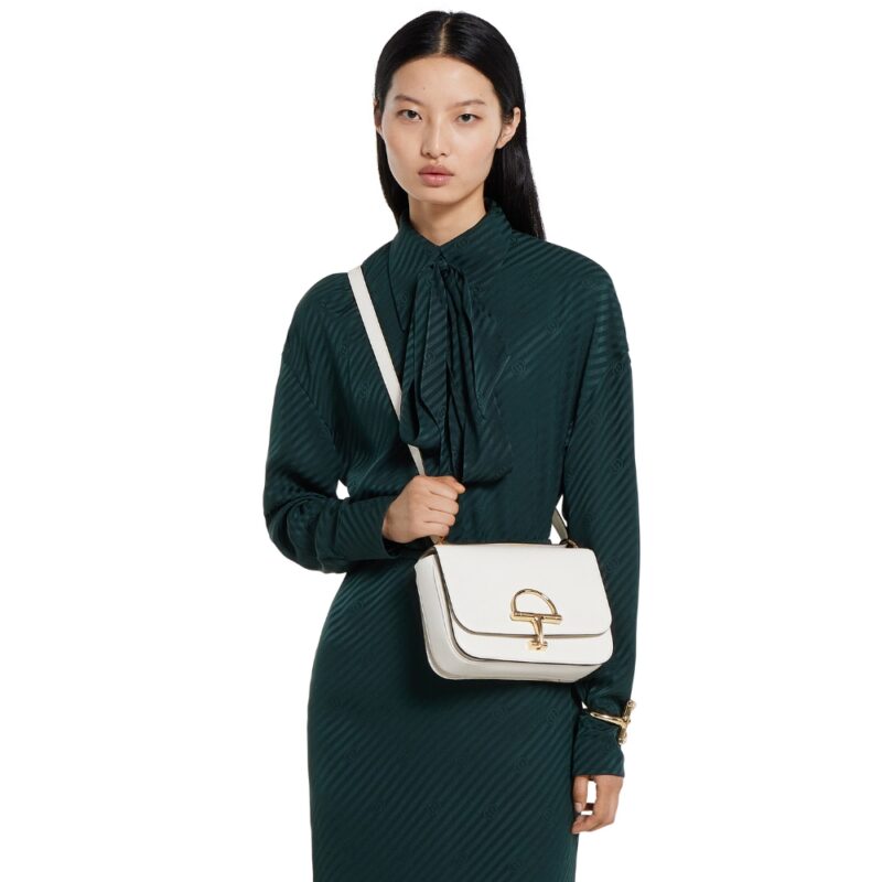 In the Fall Winter 2025 collection, the Gucci Siena small shoulder bag carries forward the evolution of the Horsebit, a signature code that is inherently Gucci. Crafted from fine smooth leather, its structured silhouette is defined by the half Horsebit clasp, a distinctive detail first introduced in the 1970s. Finished with gold-toned hardware and a lined interior featuring three gussets and a zip pocket.