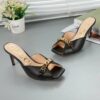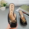 Gucci Sylvie Chain Mule Sandals Black Leather 626769 C9D00 1000