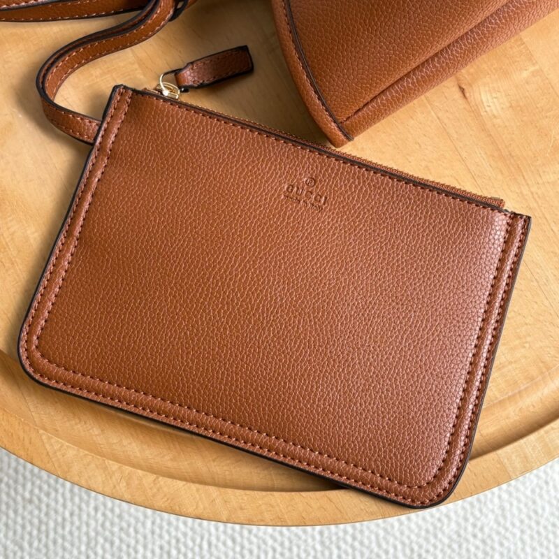 - Brown grainy leather on one side, beige and dark brown GG canvas on the other