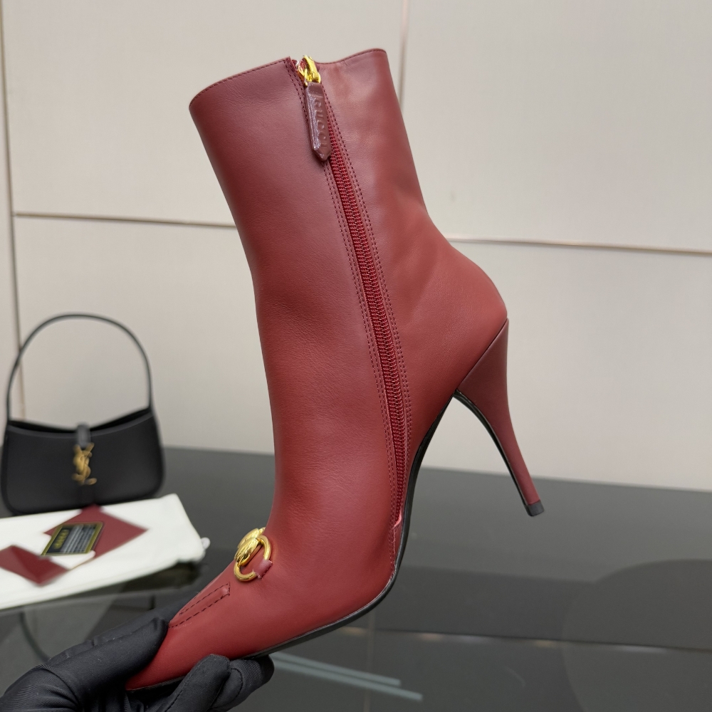 GUCCI WOMEN ANKLE BOOT WITH HORSEBIT ROSSO ANCORA RED 835741 BKO00 6207