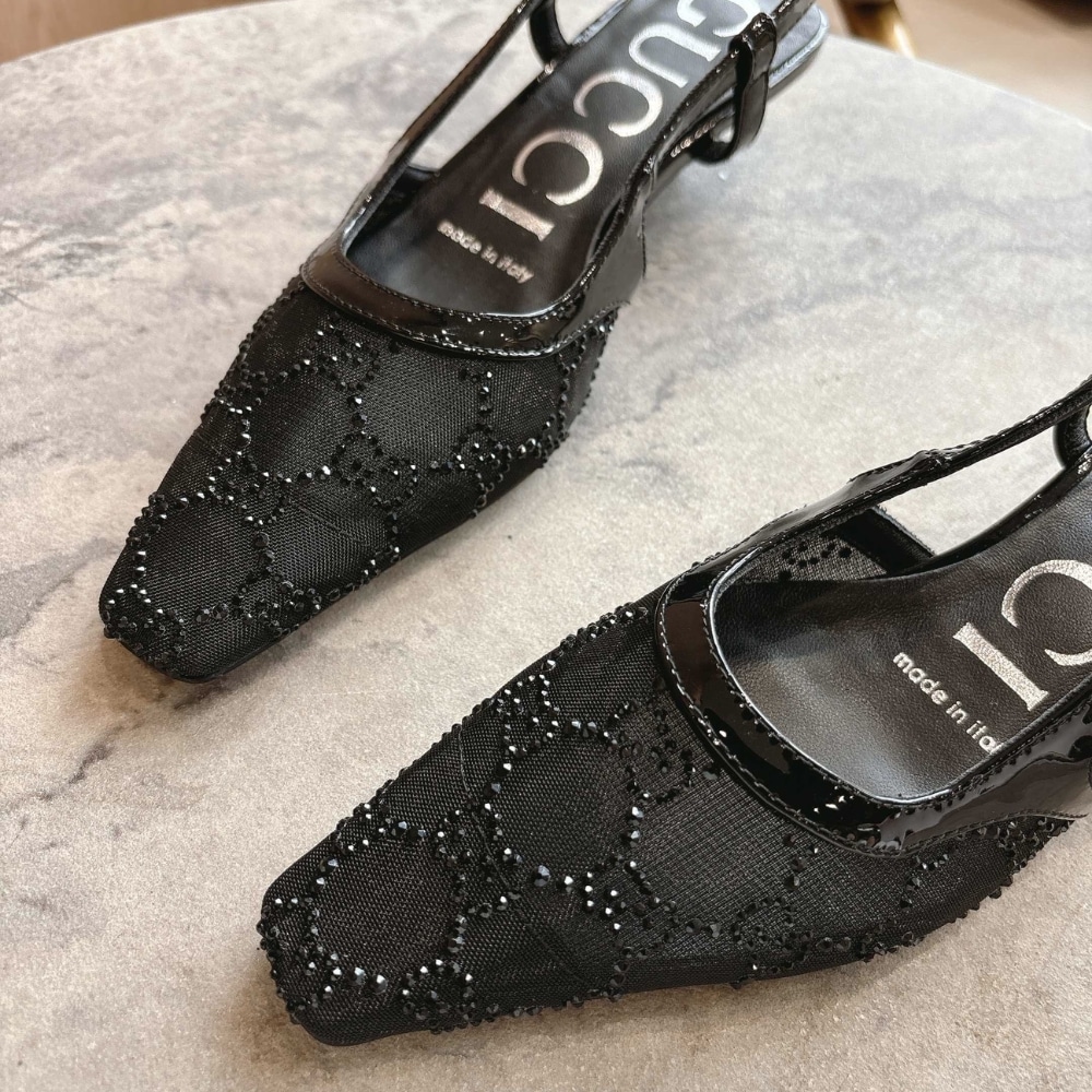 GUCCI WOMEN GG CRYSTAL SLINGBACK PUMP BLACK MESH ‎840728 FAEQ0 1046