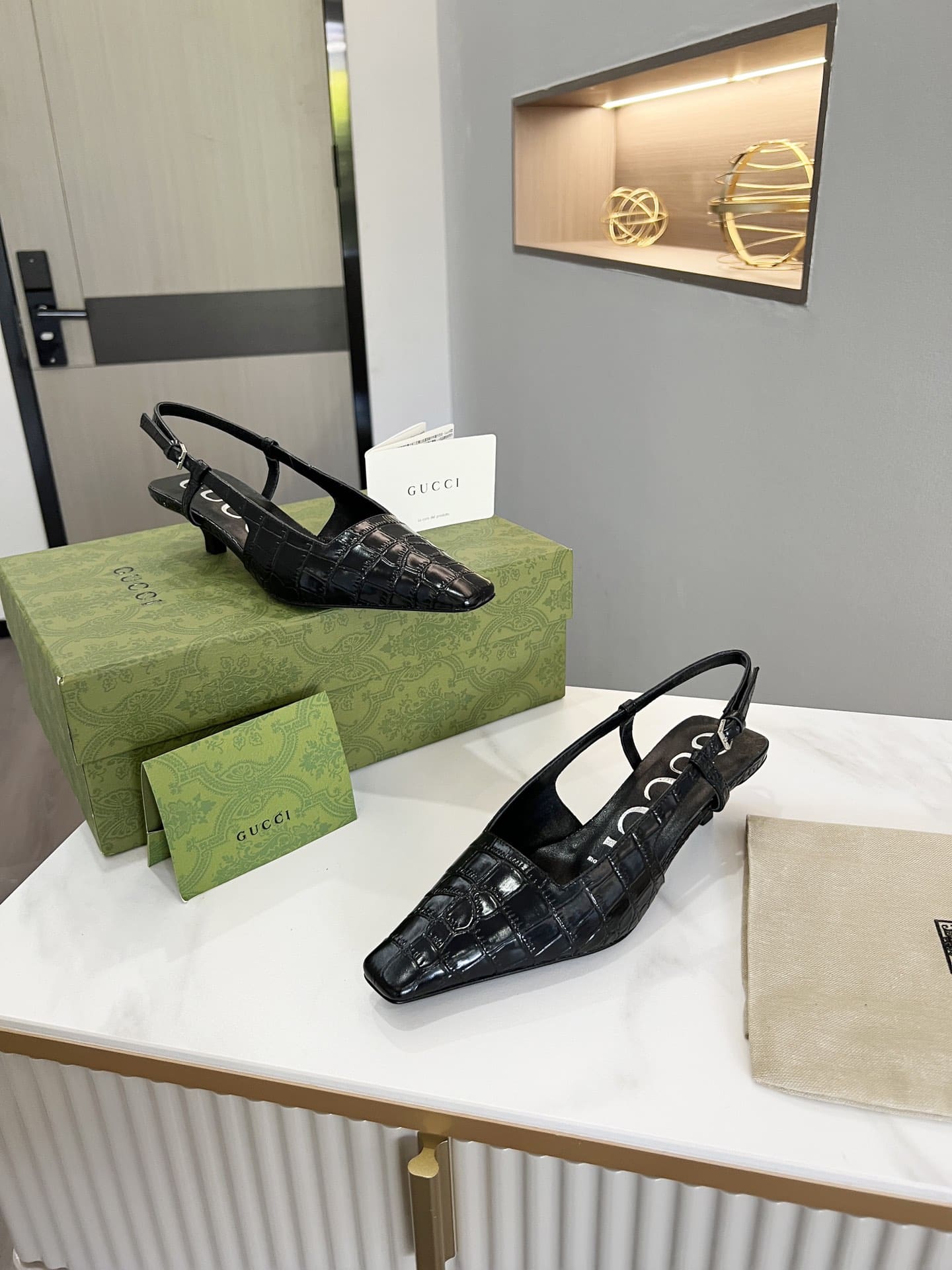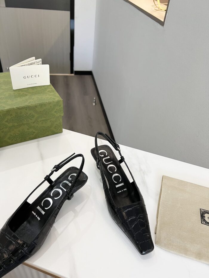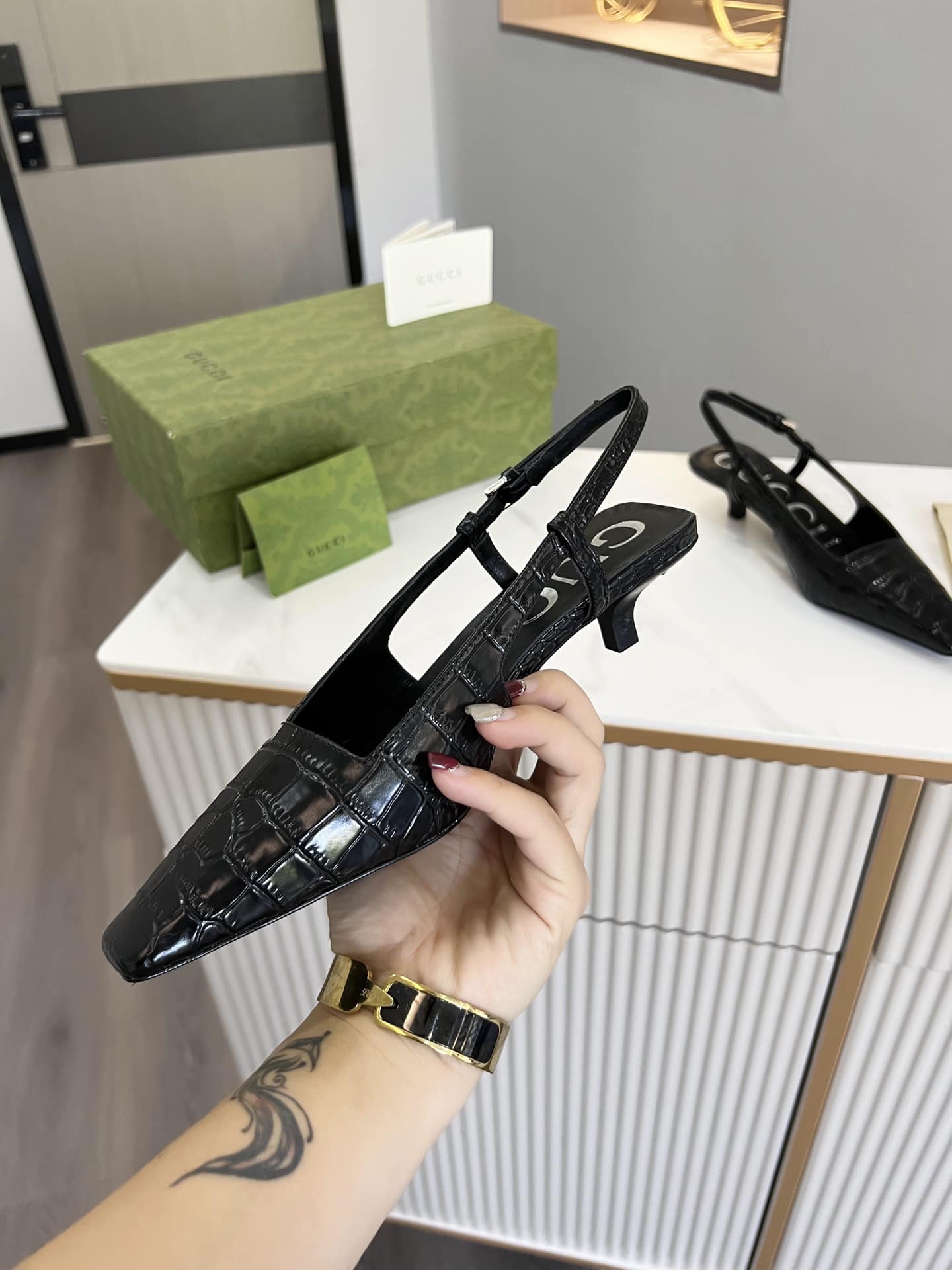 - Black crocodile print leather
