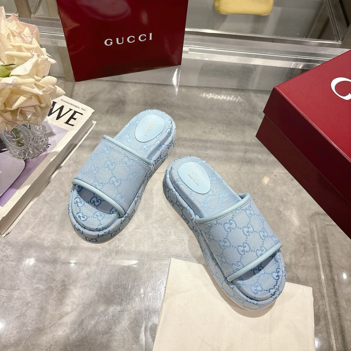 GUCCI WOMEN’S GG PLATFORM SANDAL LIGHT BLUE ‎816797 FAD9D 4952