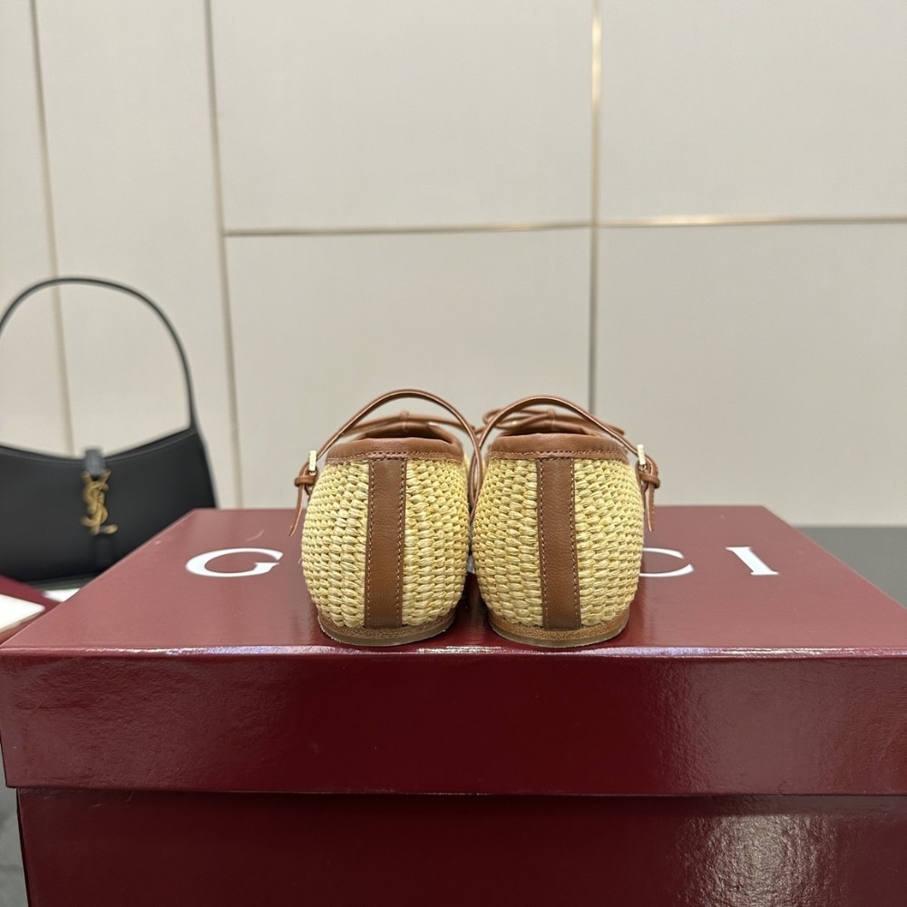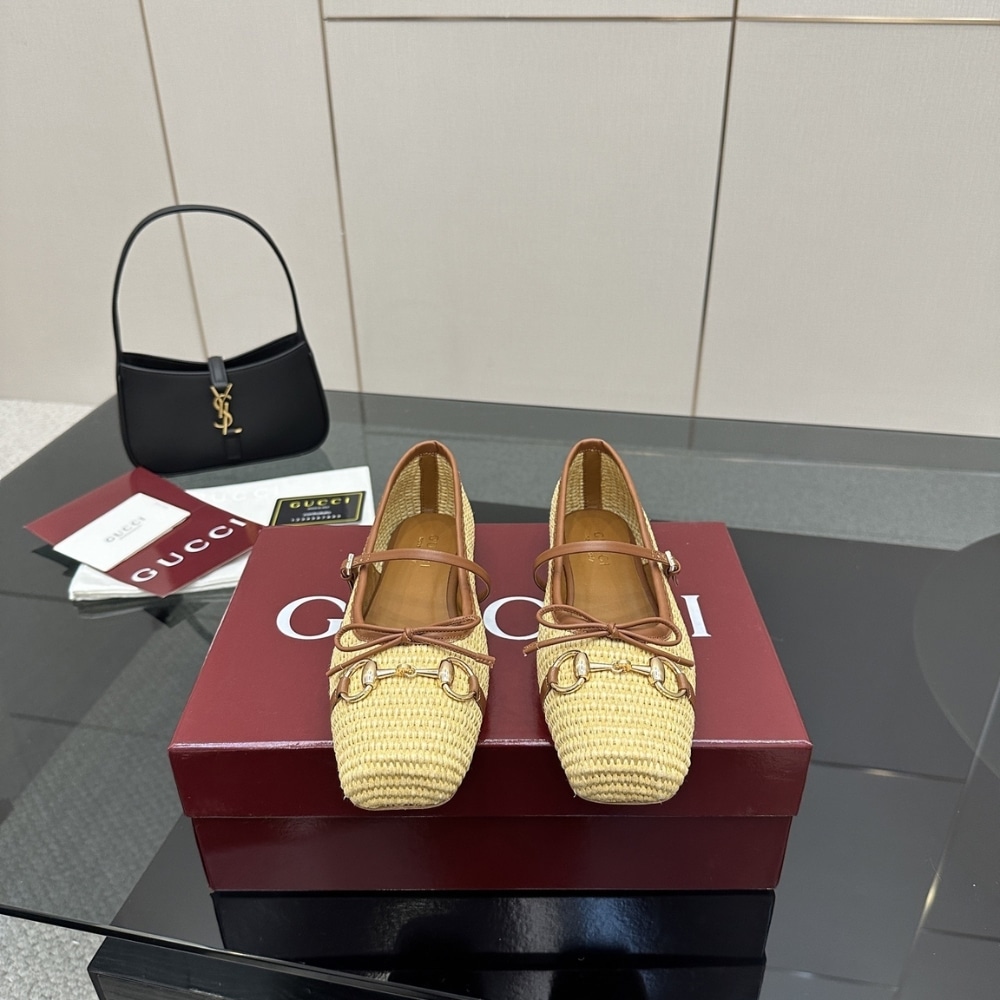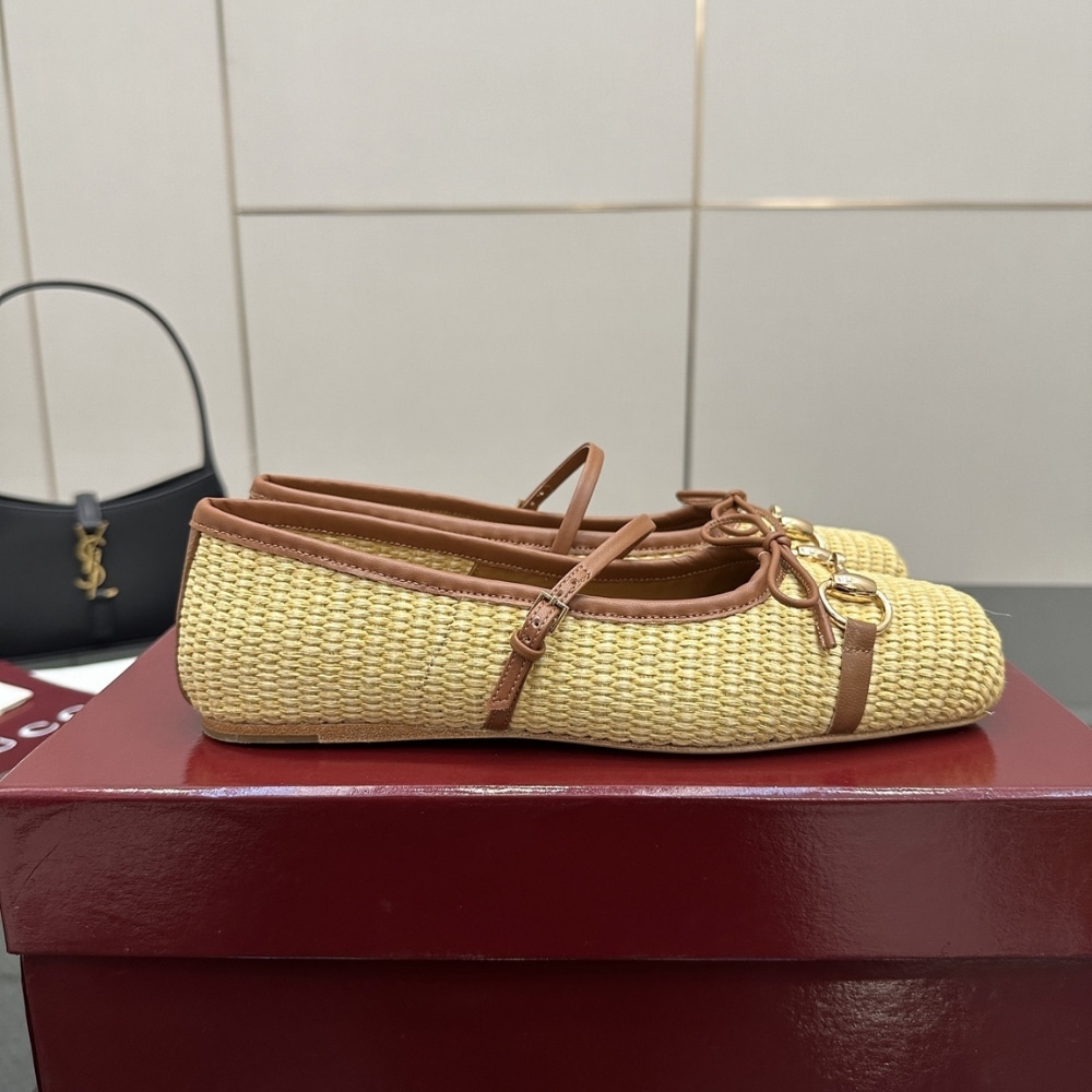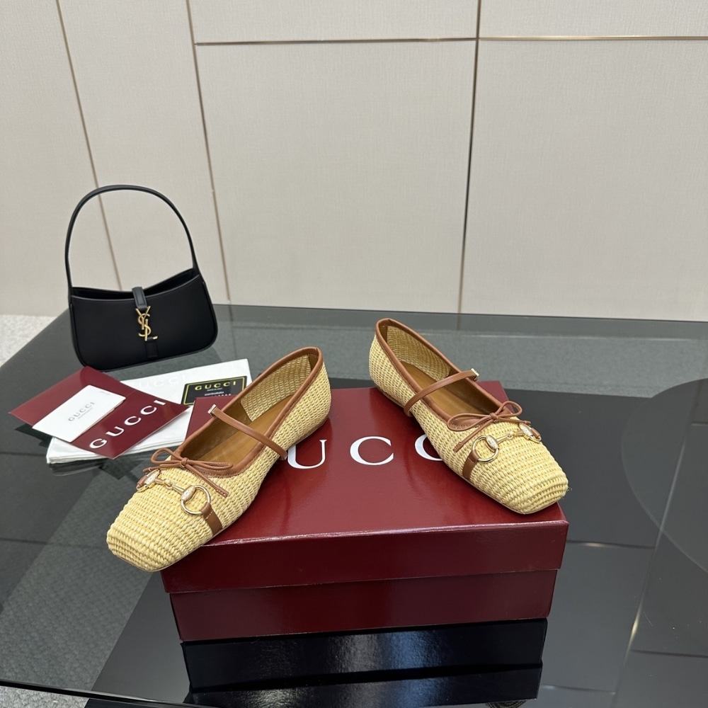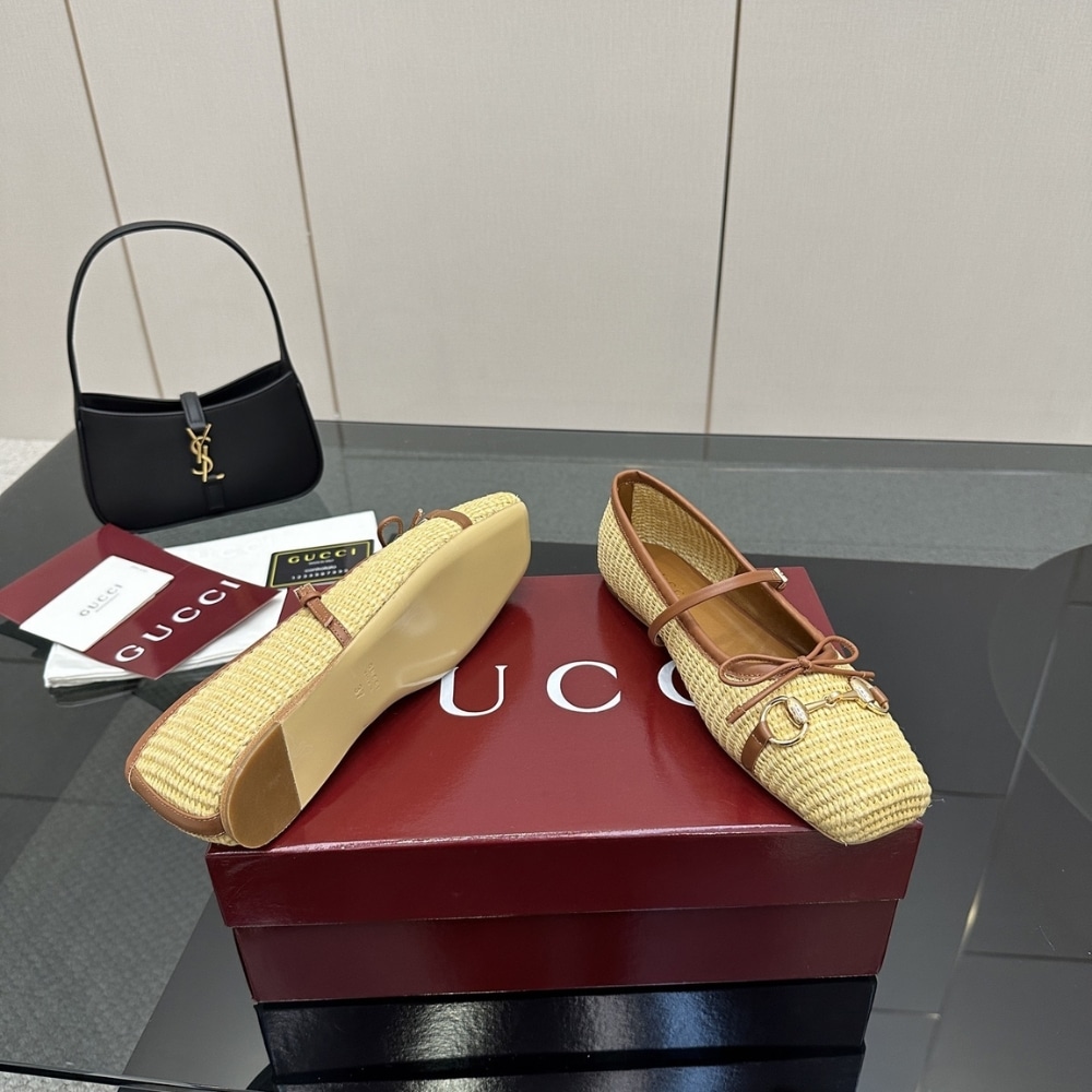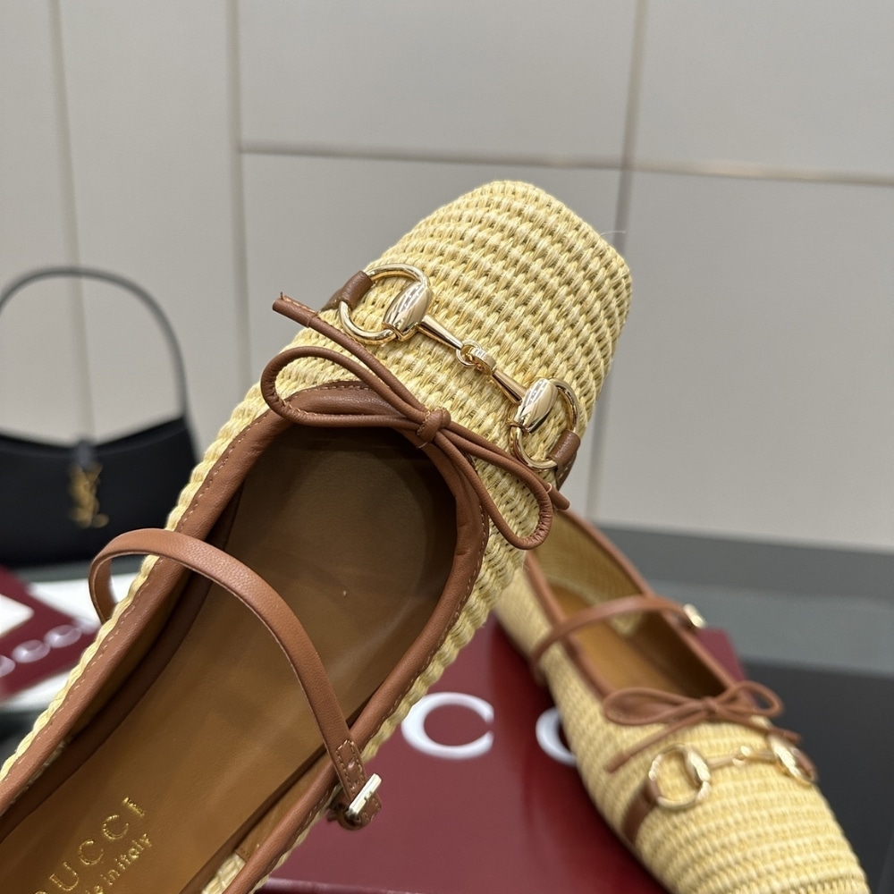 GUCCI WOMEN’S HORSEBIT BALLET FLAT RAFFIA CROCHET 832427 FAEMZ 9542