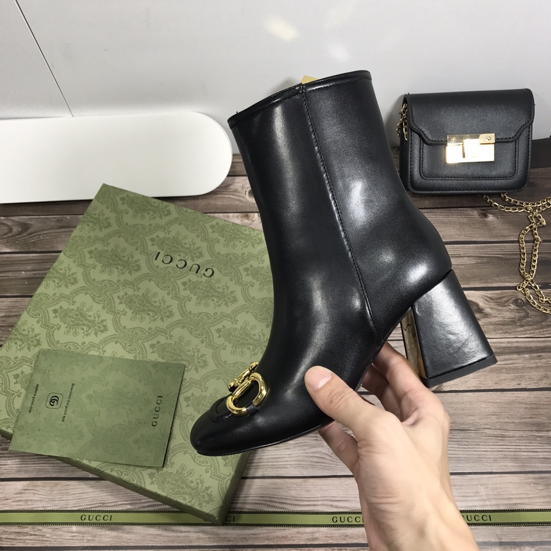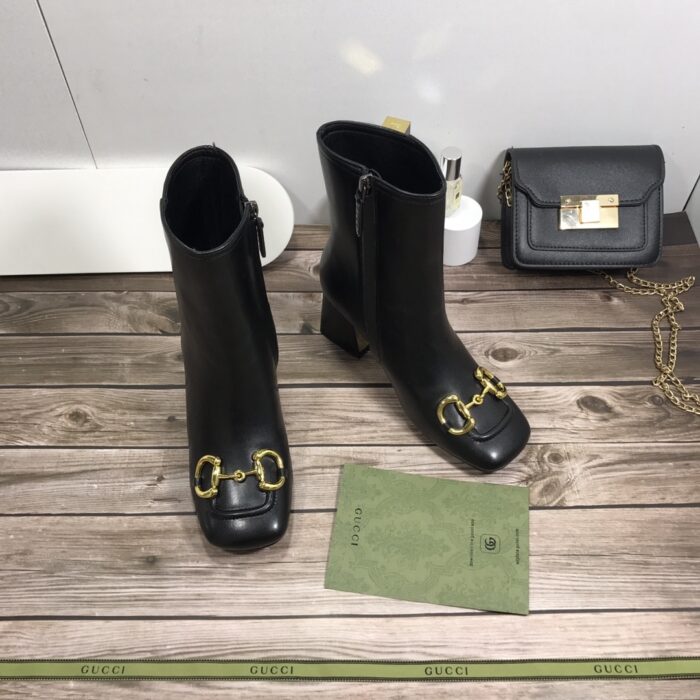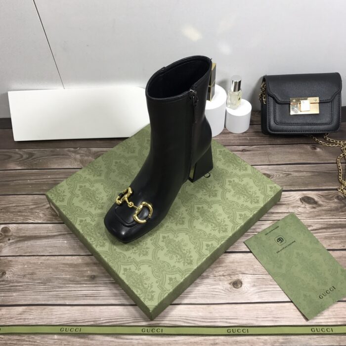 GUCCI WOMEN’S HORSEBIT MID HEEL ANKLE BOOTS BLACK 643888 BKO00 1000