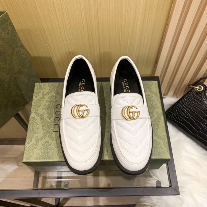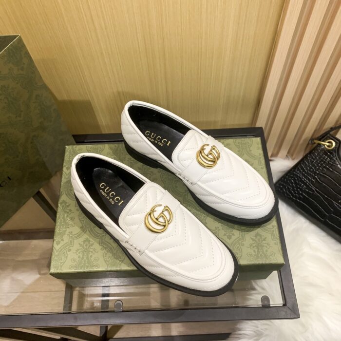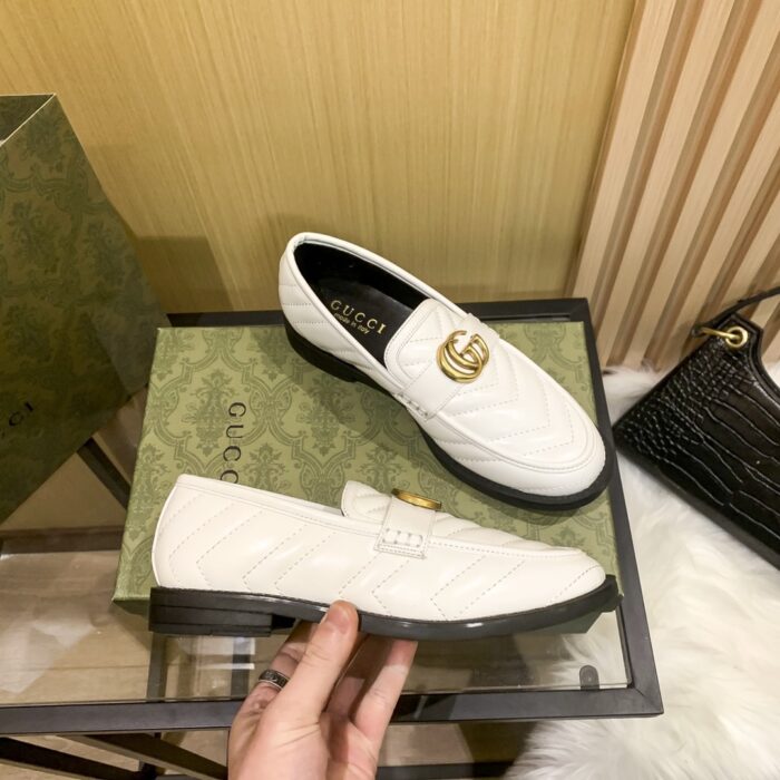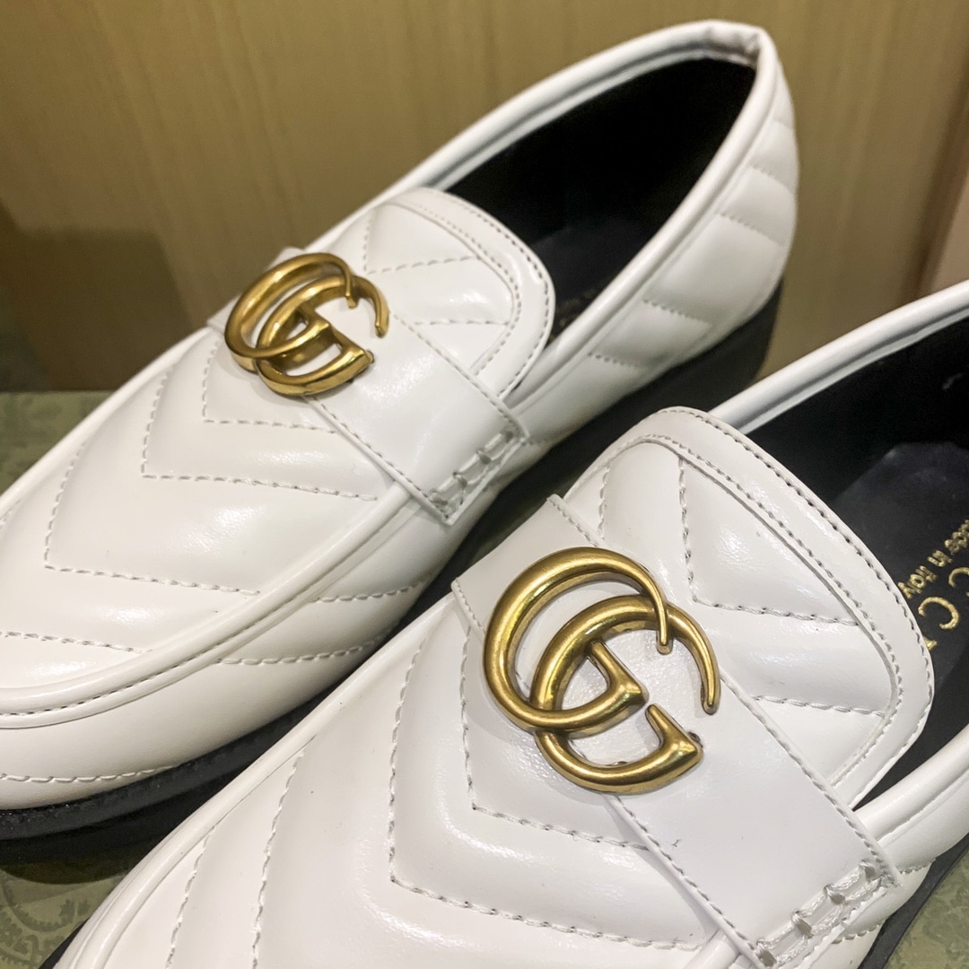 - White chevron matelassé leather