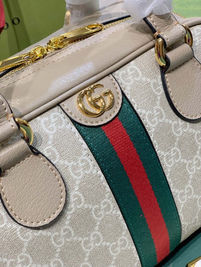 GUCCI WOMEN’S METALLIC OPHIDIA GG TOP HANDLE BAG BEIGE AND WHITE 32CM 724606 FABEX 9642
