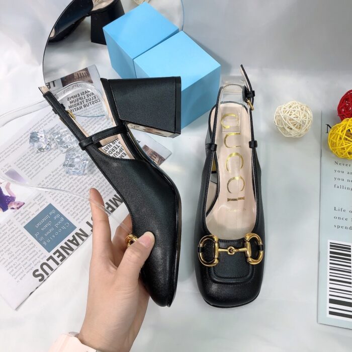 GUCCI WOMEN’S MID HEEL SLINGBACK WITH HORSEBIT BLACK