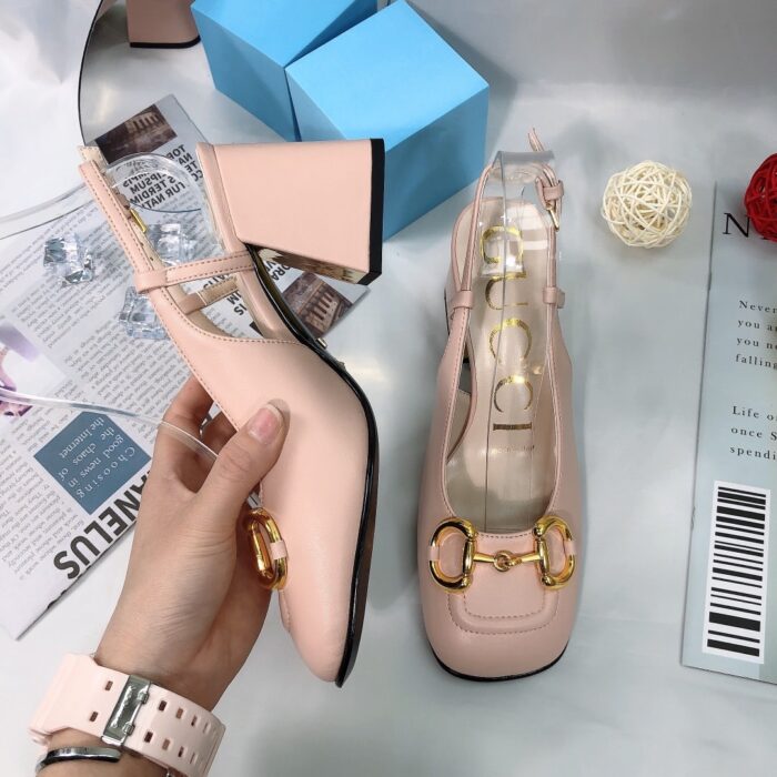 GUCCI WOMEN’S MID HEEL SLINGBACK WITH HORSEBIT LIGHT PINK ‎643892 C9D00 6705