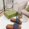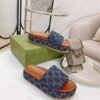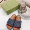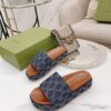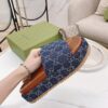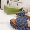 - Dark blue and ivory eco washed organic GG jacquard denim