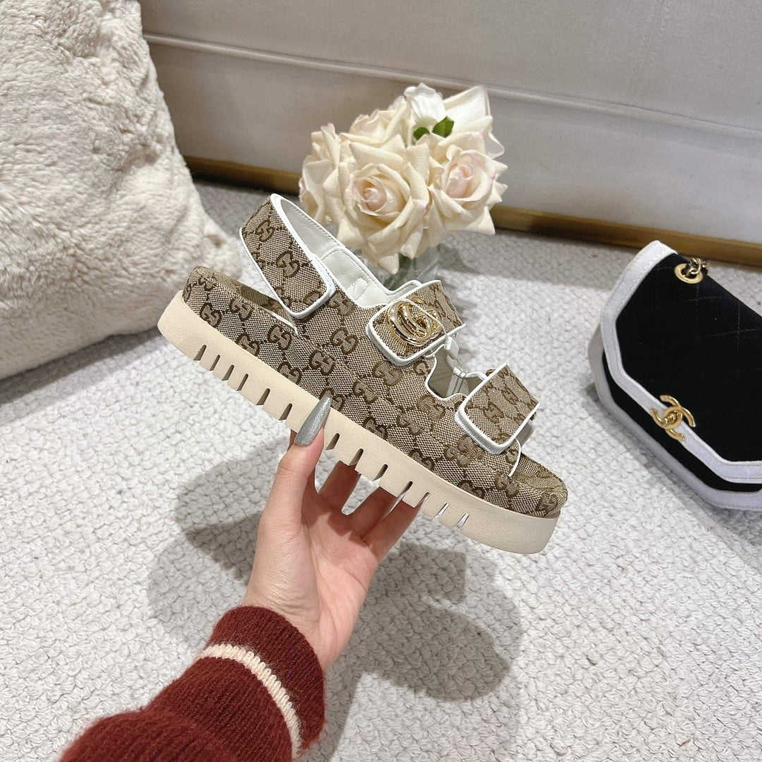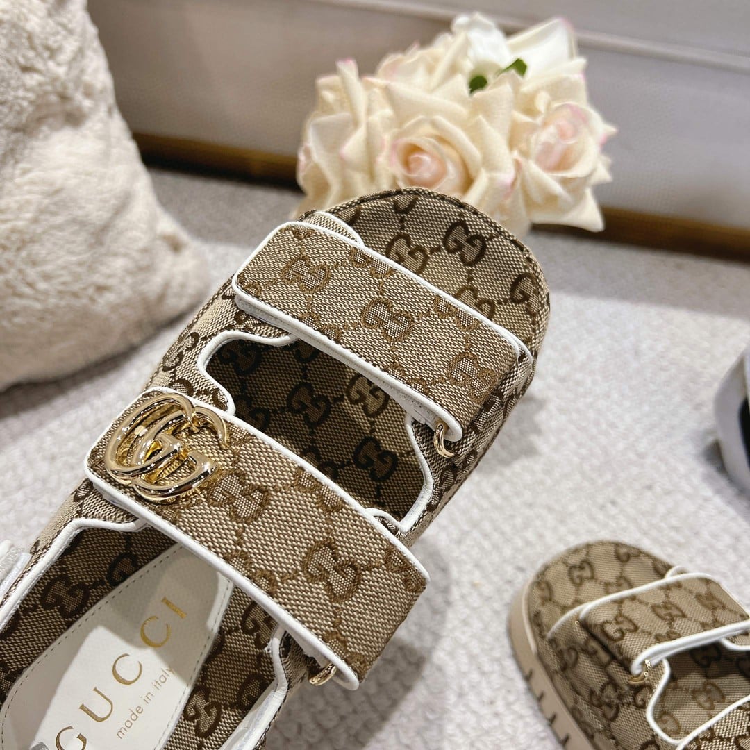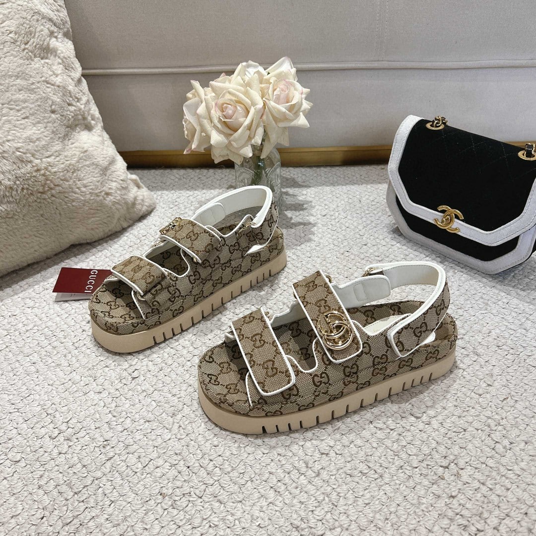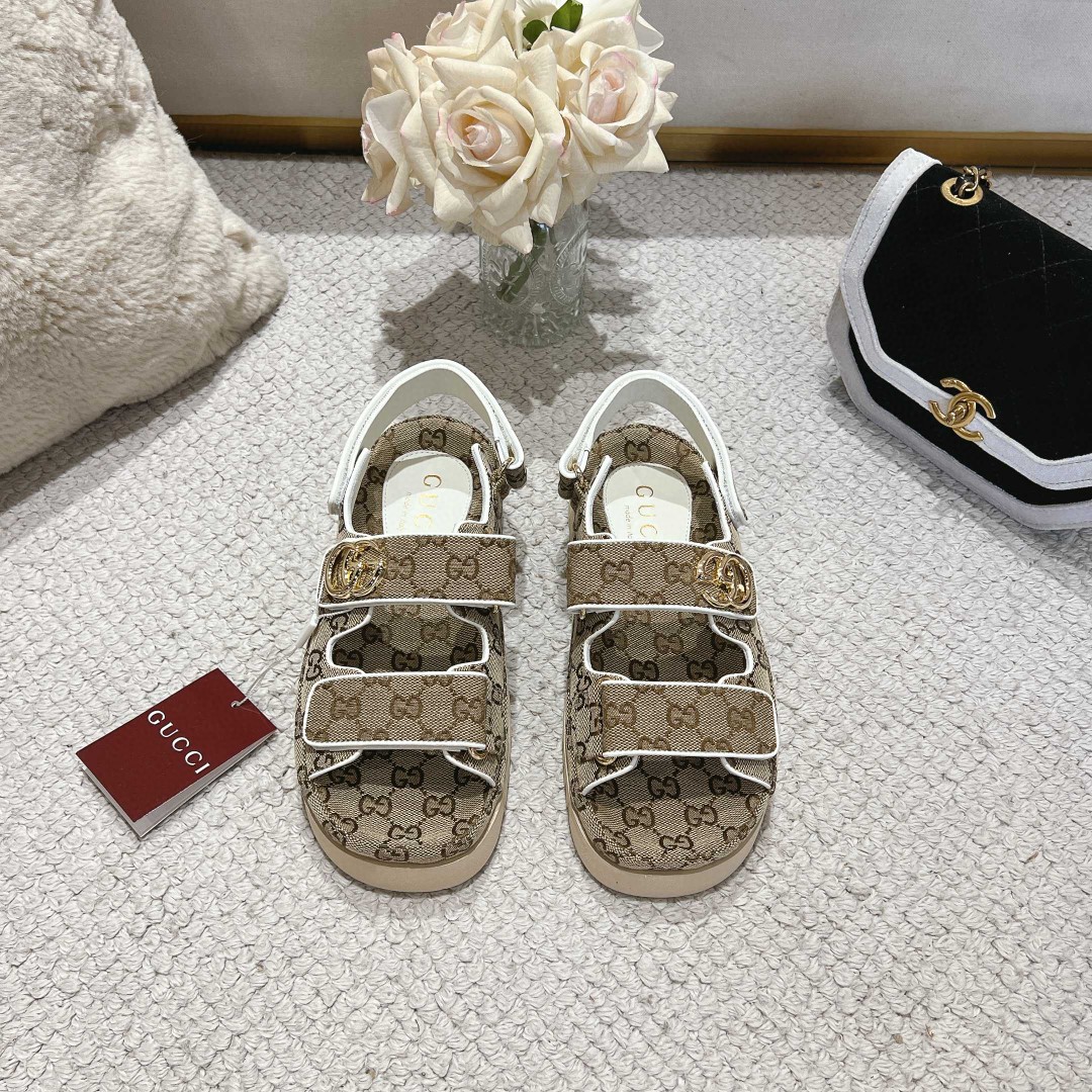 GUCCI WOMEN’S SANDAL WITH DOUBLE G BEIGE 816630 FAD9F 9753
