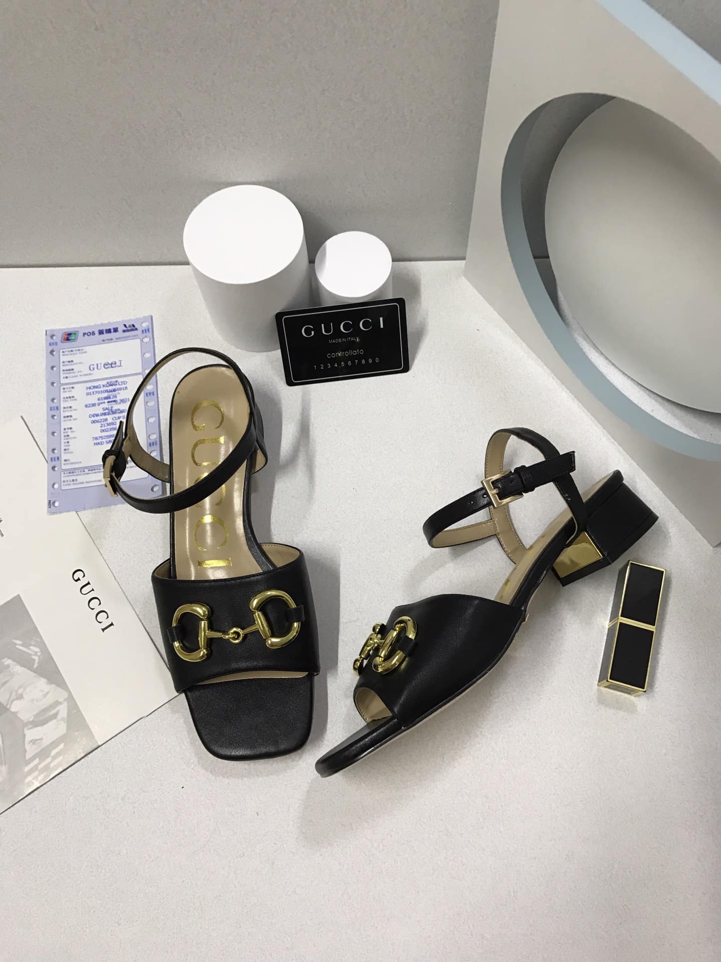 - Gold-toned hardware