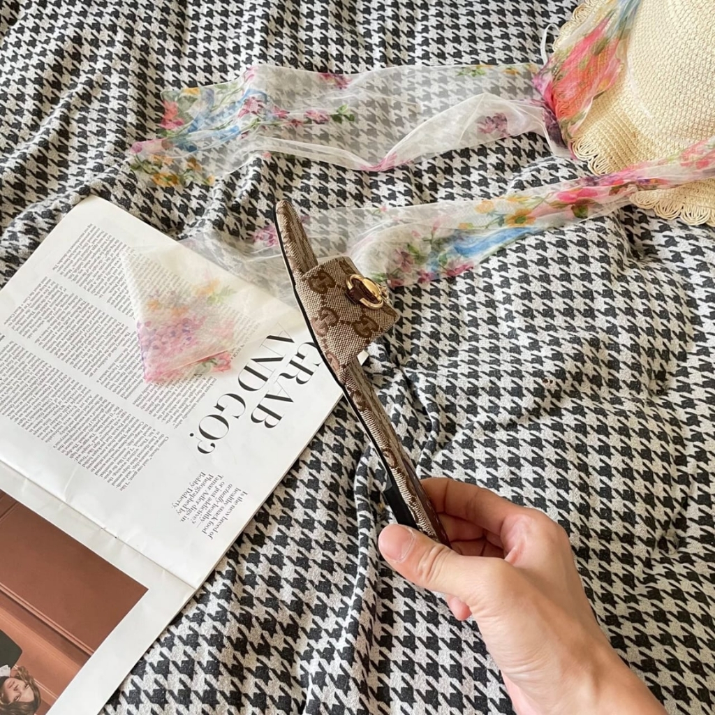 Defined by the light gold-toned Horsebit detail, this slide sandal crafted in GG canvas merges the sophisticated material with a heritage motif, offering a refined touch to warm-weather ensembles.