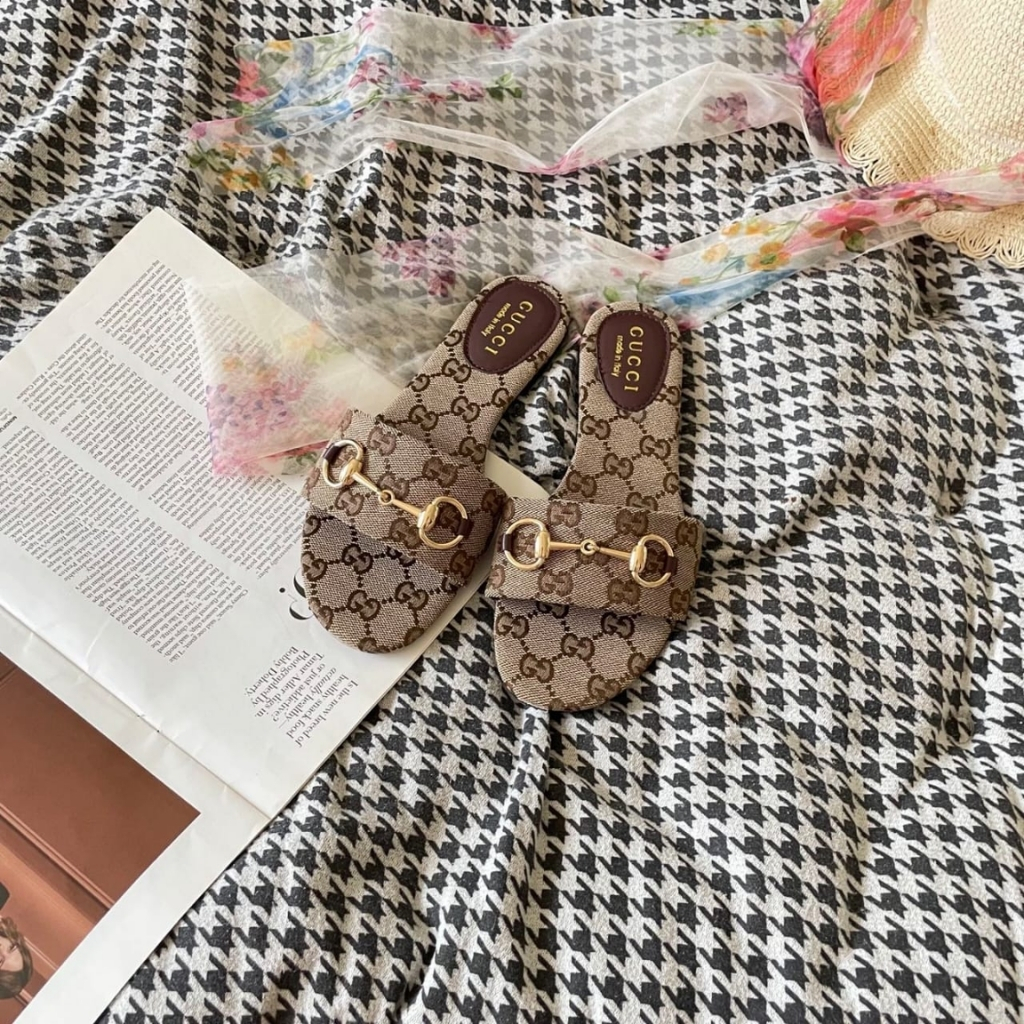 Replica 1:1 – Gucci Women’s Slide Sandal With Horsebit Beige And Dark Brown GG Canvas 835828 FAB10 2543