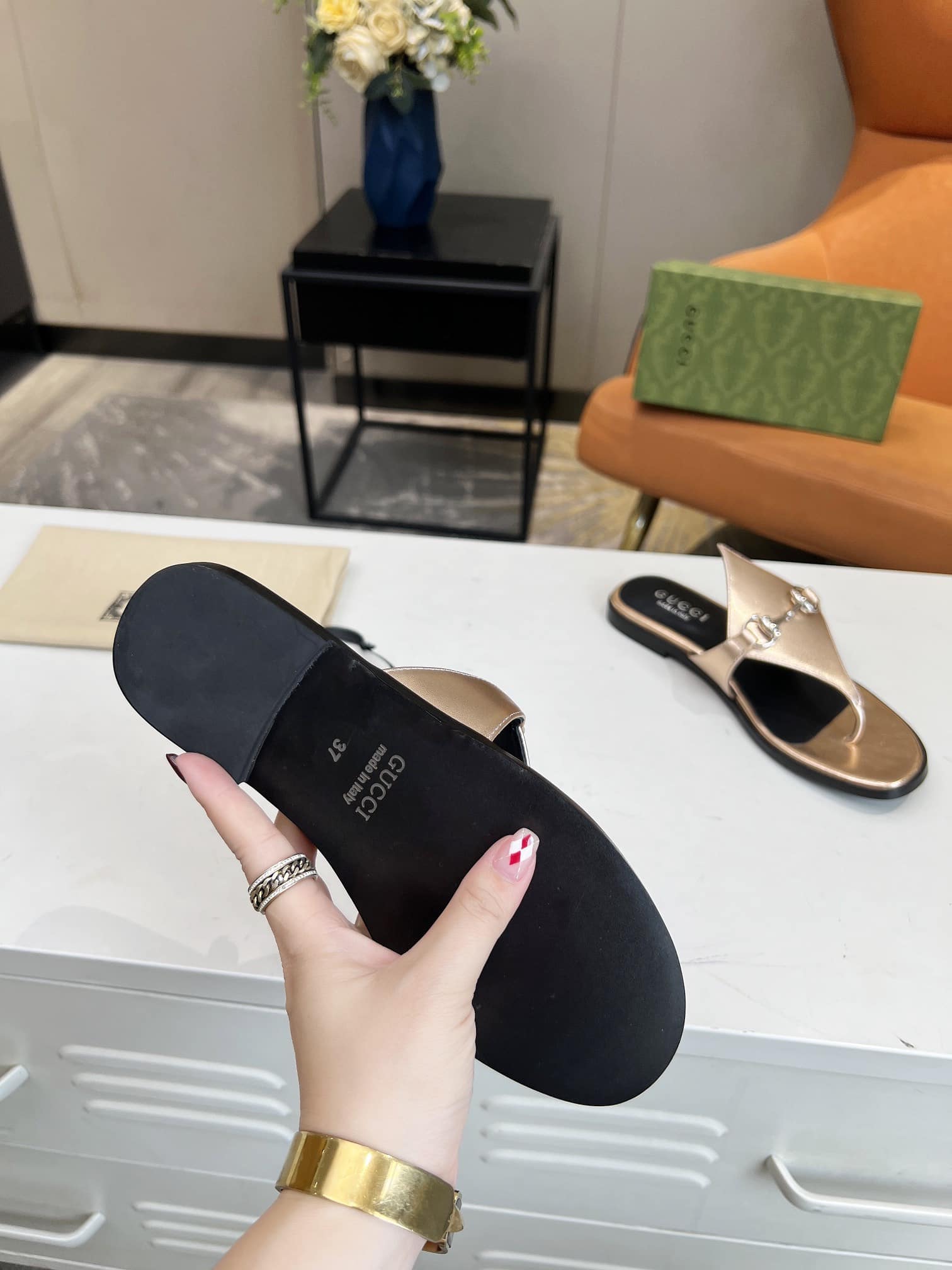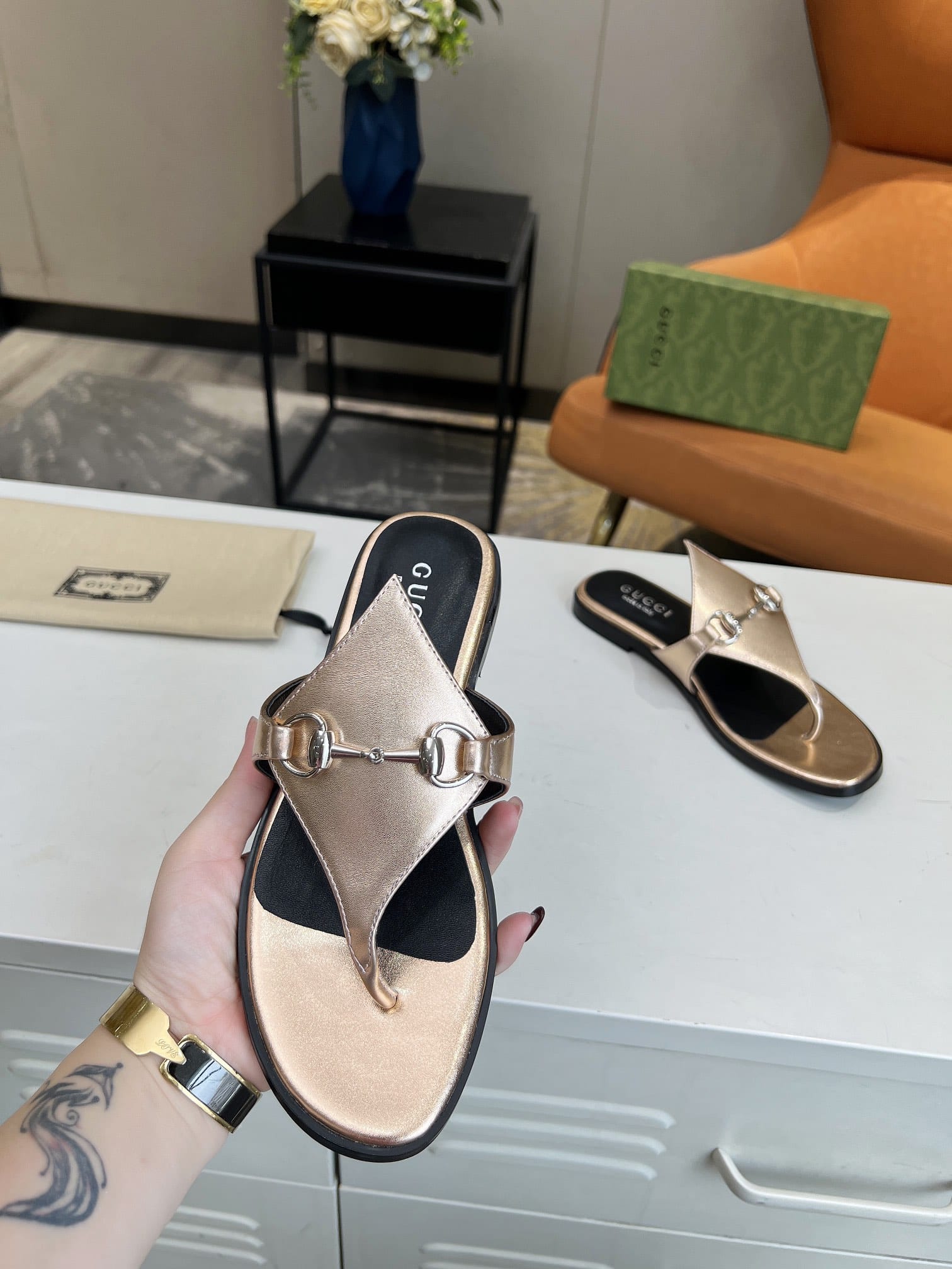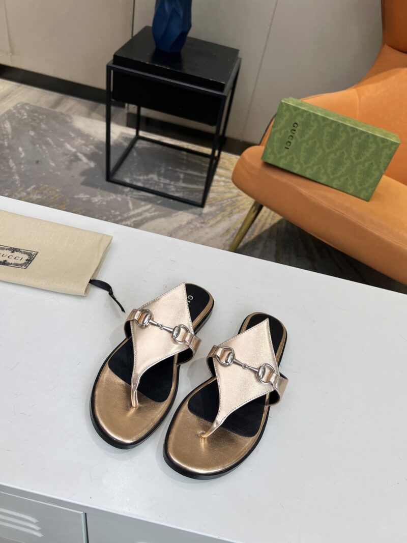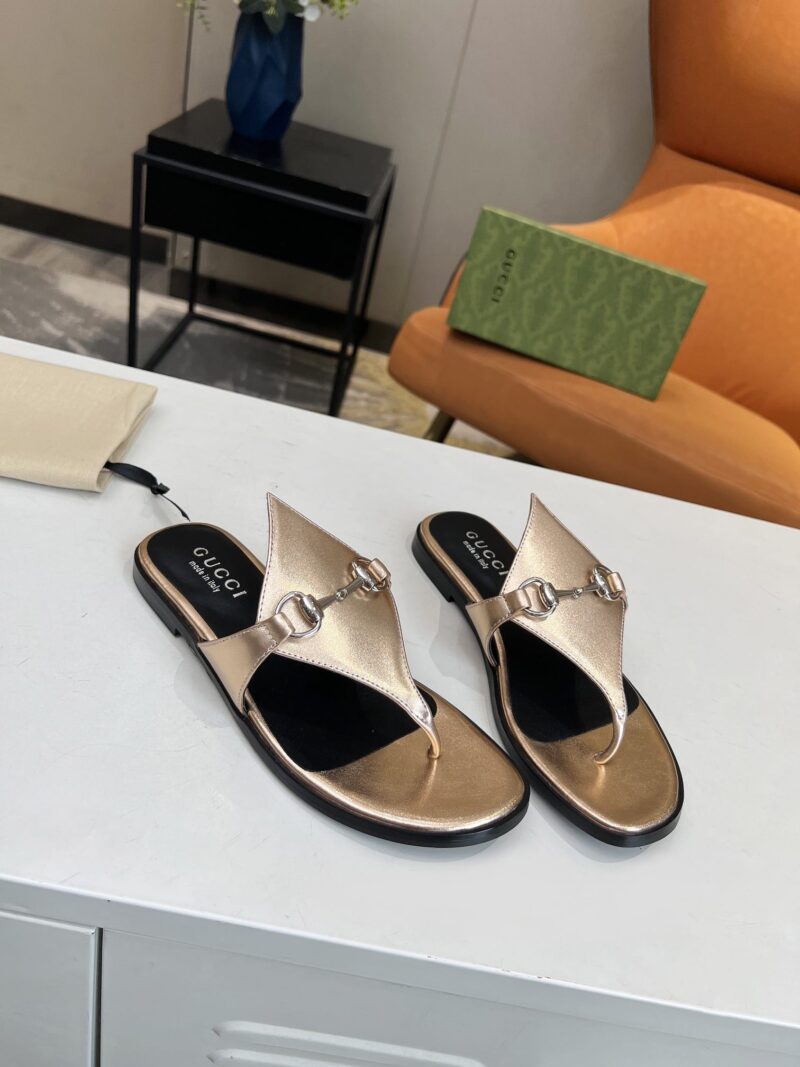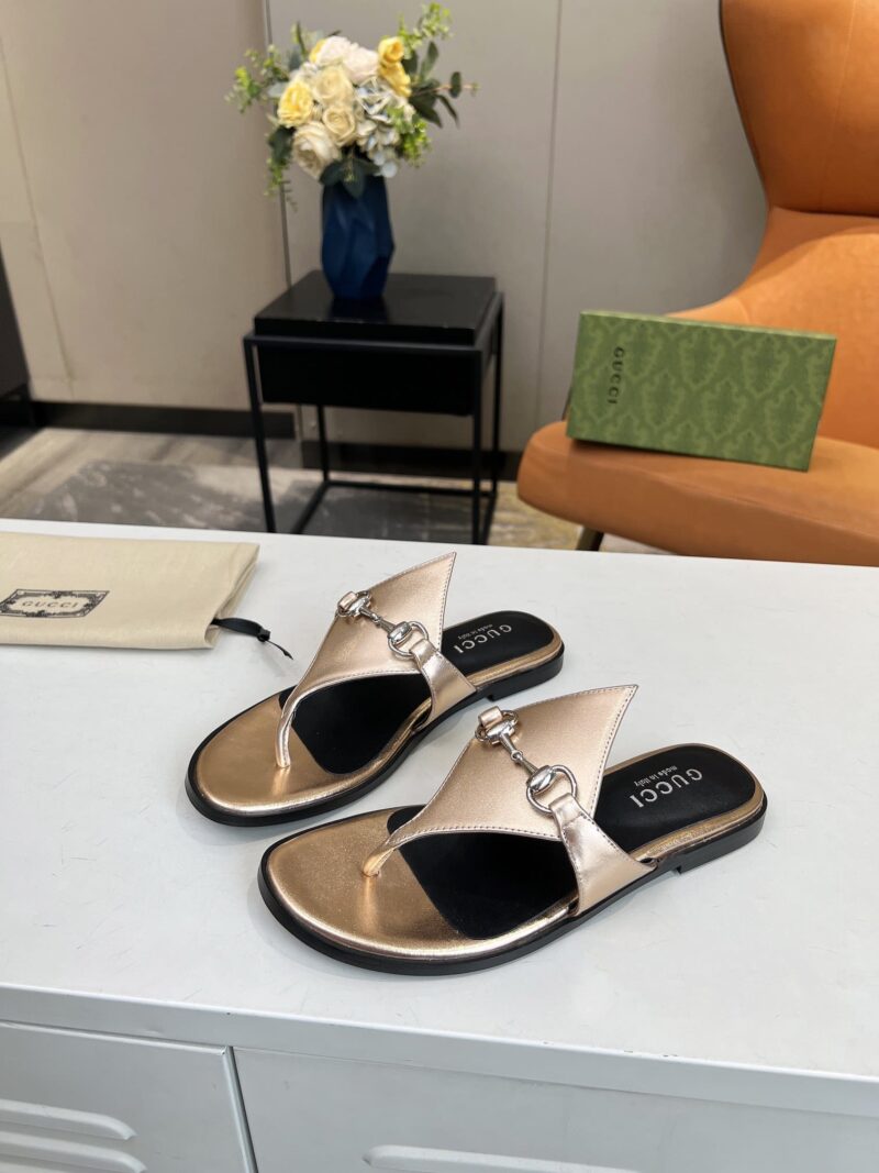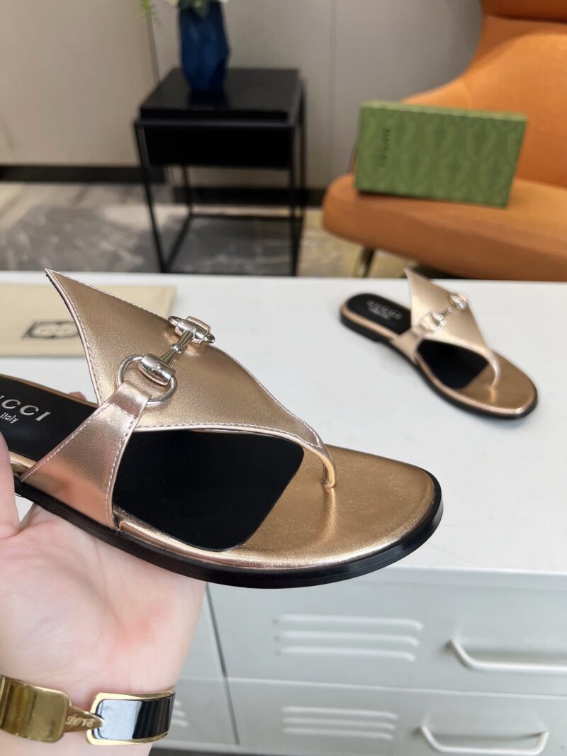 GUCCI WOMEN’S THONG SANDAL WITH HORSEBIT GOLD