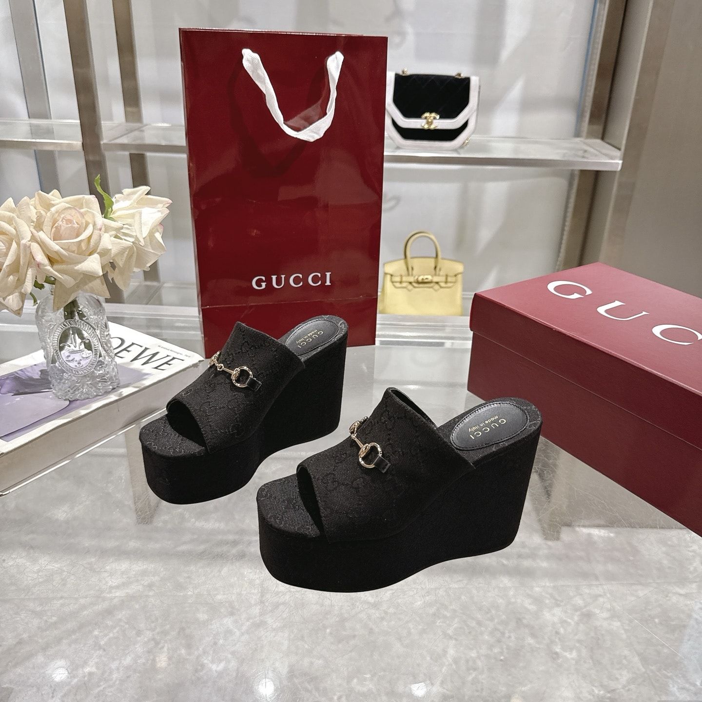 GUCCI WOMEN’S WEDGE SANDAL WITH HORSEBIT BLACK 816328 FAB10 1000