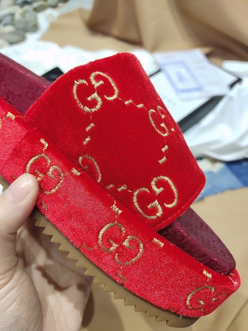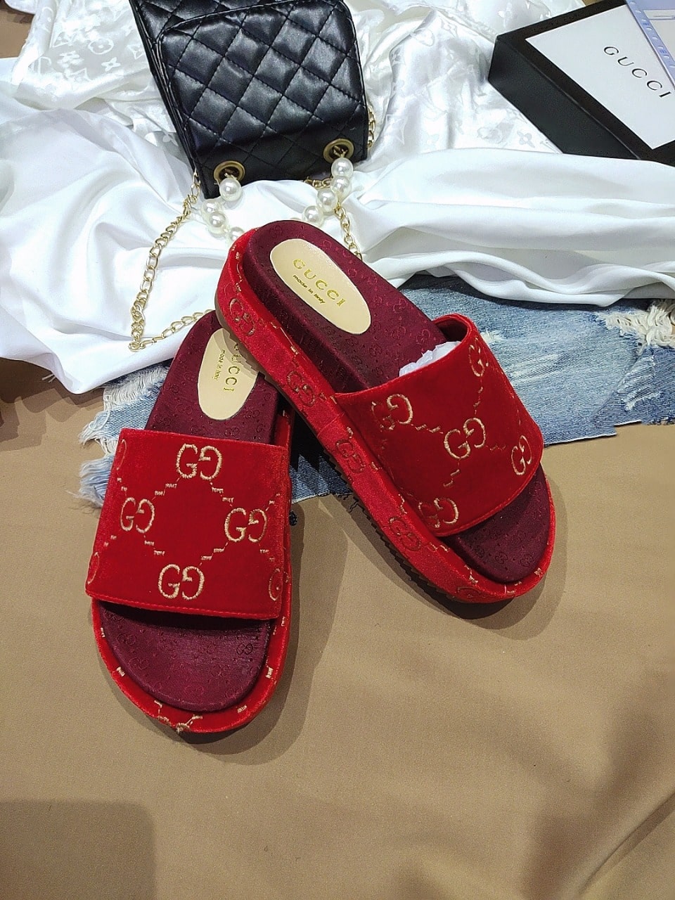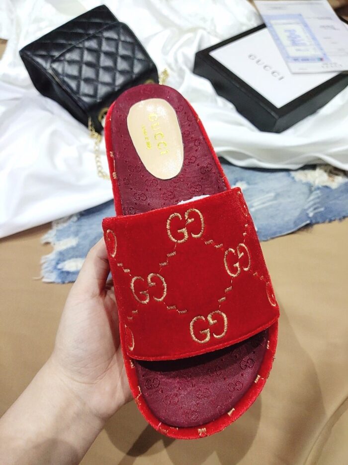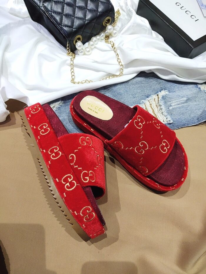 GUCCI WOMEN’S WITH GG PATTERN SLIDE SANDAL RED