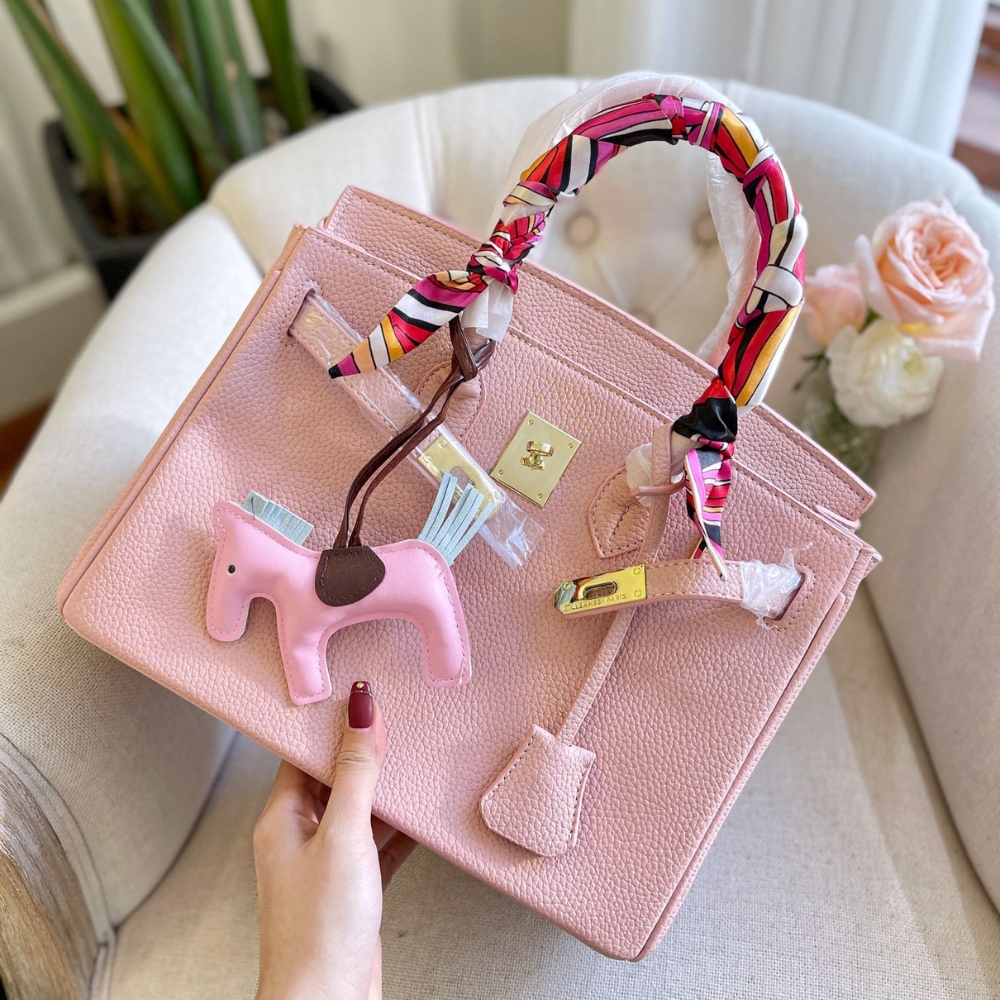 The Hermes Birkin 30 in Light Pink is a highly coveted handbag that exudes feminine elegance and sophisticated charm. This 30cm edition is expertly crafted from Togo leather, a durable, scratch-resistant material known for its beautiful pebbled texture and ability to maintain the bag’s structured shape. It is perfectly complemented by radiant gold-tone hardware, which adorns the iconic swivel clasp, padlock, and protective base studs.