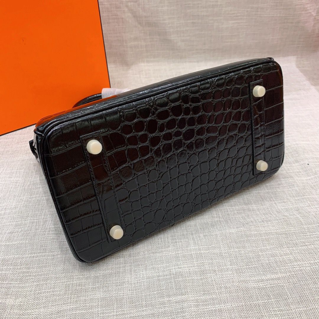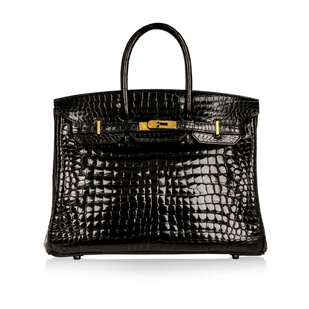 HERMES BIRKIN 35 SHINY POROSUS CROCODILE BLACK NOIR 35CM