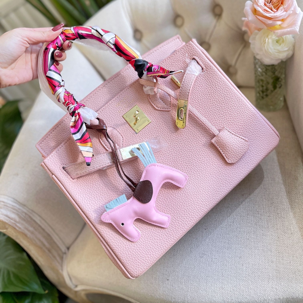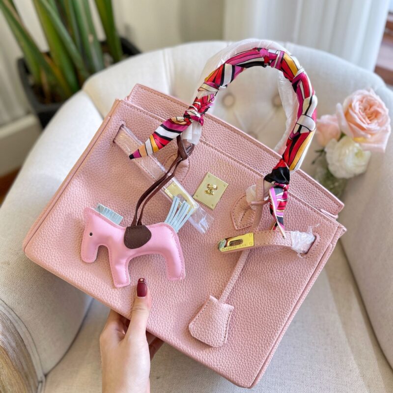 The Hermes Birkin 28 in Light Pink is a highly coveted handbag that exudes feminine elegance and sophisticated charm. This 28cm edition is expertly crafted from Togo leather, a durable, scratch-resistant material known for its beautiful pebbled texture and ability to maintain the bag’s structured shape. It is perfectly complemented by radiant gold-tone hardware, which adorns the iconic swivel clasp, padlock, and protective base studs.