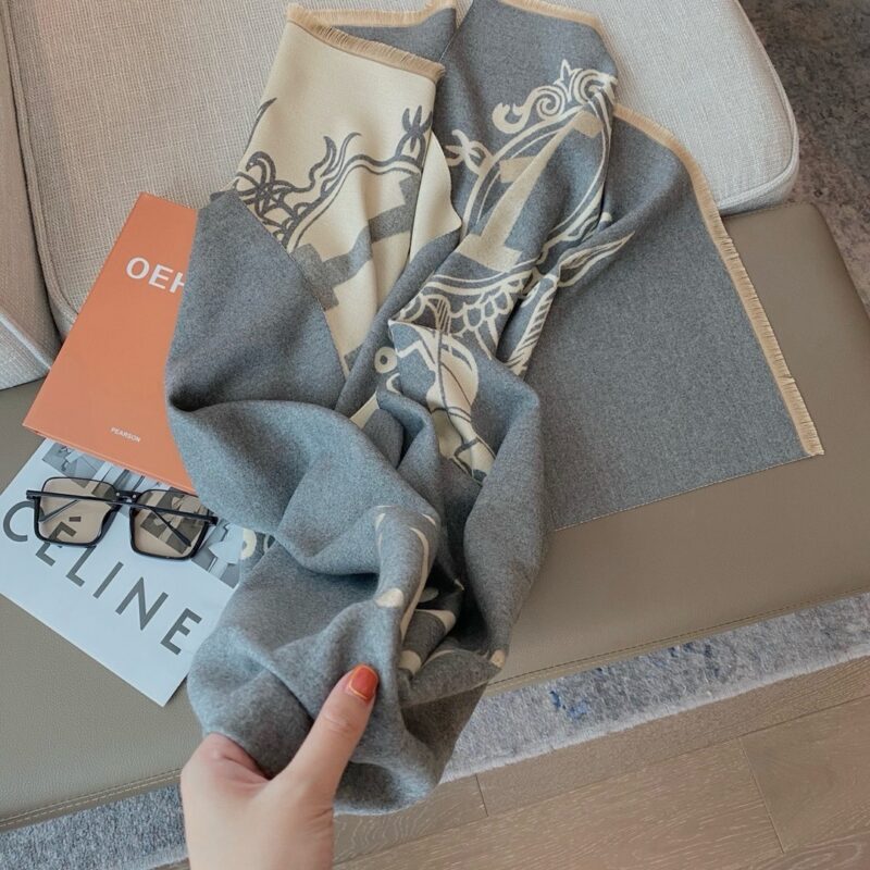 Hermes Scarf Wrap Shawl In Grey / 70.9 x 25.6 inches / Cashmere And Wool / Cozy Scarf