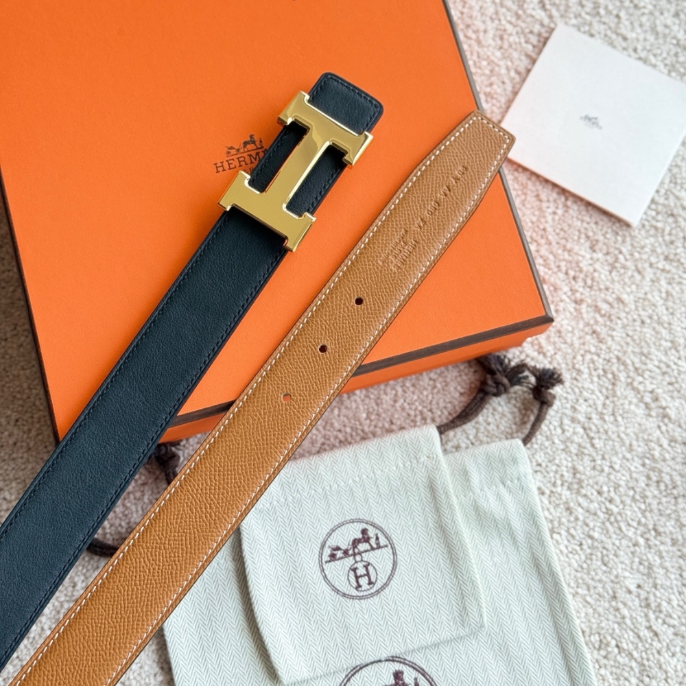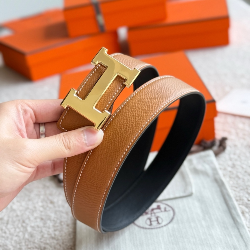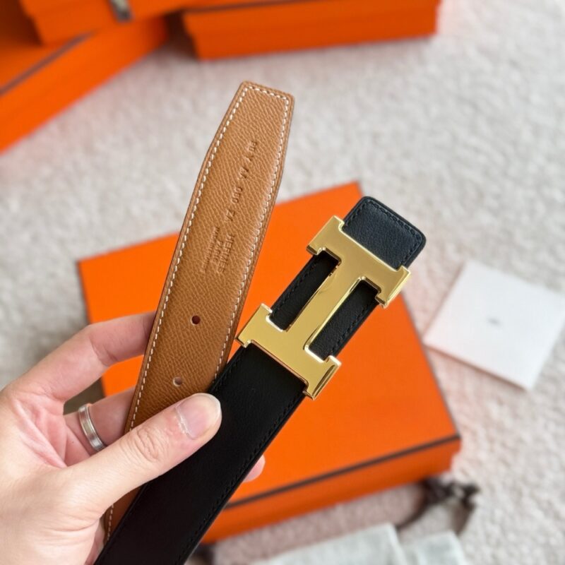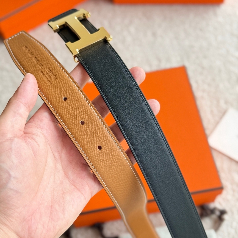 HERMES CONSTANCE GUILLOCHEE BELT BUCKLE AND REVERSIBLE LEATHER STRAP 32 MM GOLD ORANGE H079645CC06
