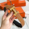 Hermes Constance Guillochee Belt Buckle And Reversible Leather Strap 32 Mm Gold Orange H079645Cc06