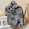 The Hermès Diamond H Logo Wool Shawl in gray is a luxurious accessory featuring an intricate jacquard-woven diamond motif with contrasting “H” signatures. Crafted from wool and cashmere blend, its generous proportions allow it to be styled elegantly as both a voluminous wrap or a classic muffler. Finished with delicate fringed edges, this timeless piece perfectly combines the Maison’s equestrian heritage with modern geometric design.