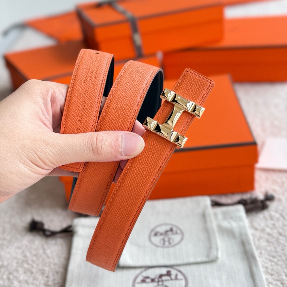 HERMES H INFINI BELT BUCKLE AND REVERSIBLE LEATHER STRAP 24MM GOLD ORANGE H011744UD26