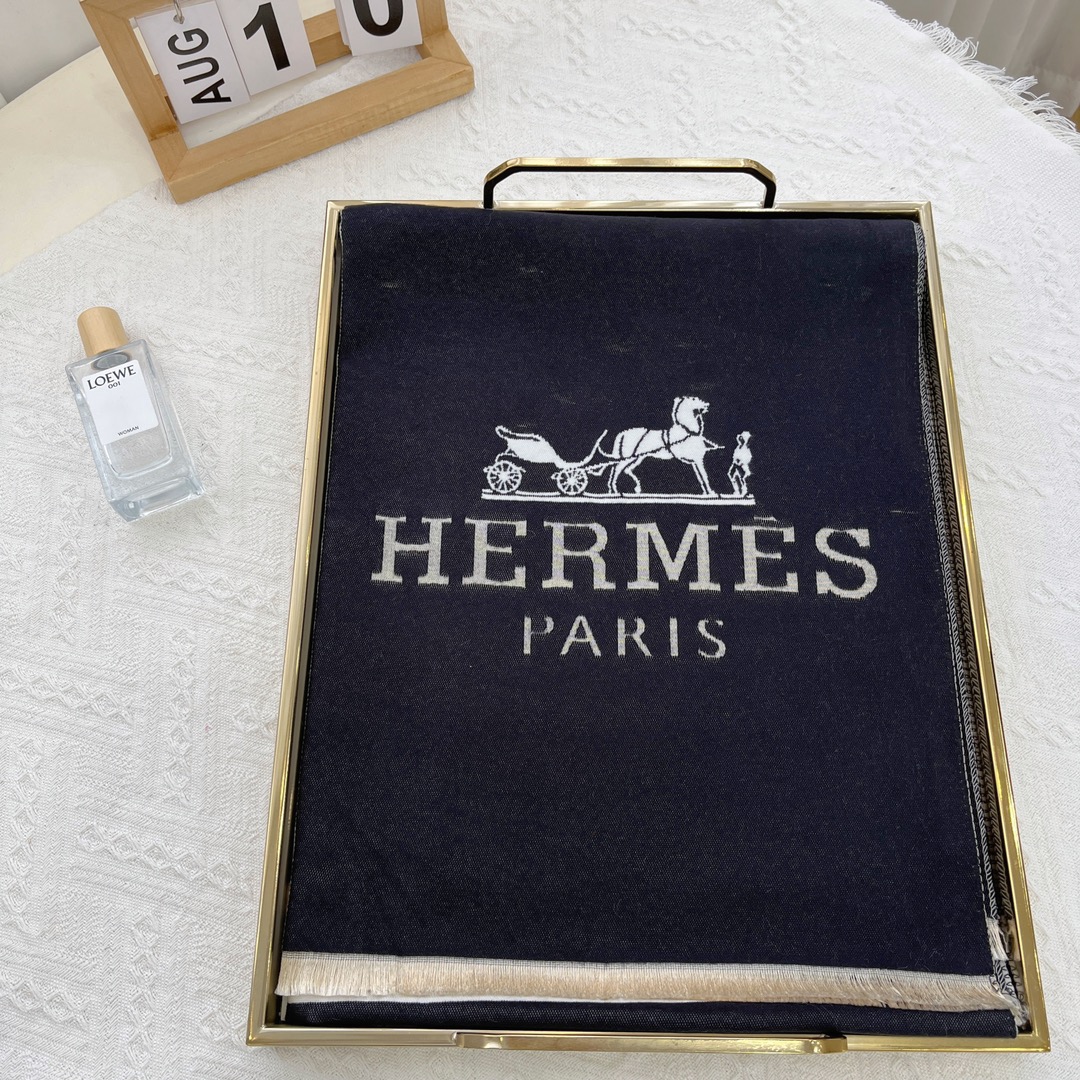 HERMES H LETTER CASHMERE MUFFLER BLACK