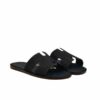 - Sandal in calfskin and denim with iconic “H” cut-out.