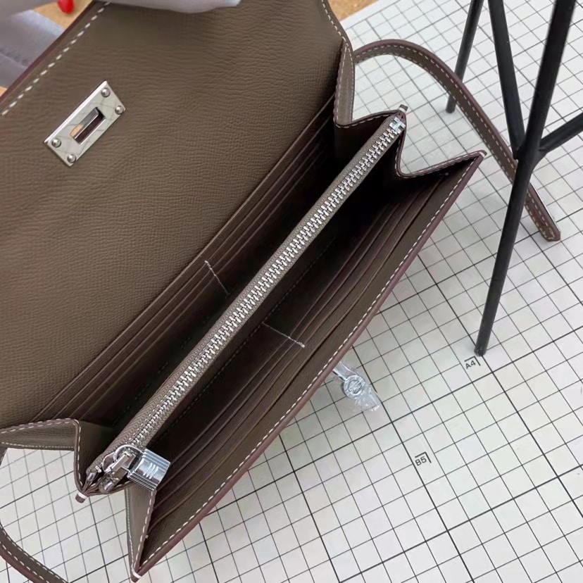 HERMES KELLY CLASSIC WALLET ÉTOUPE 19CM H051300CC18
