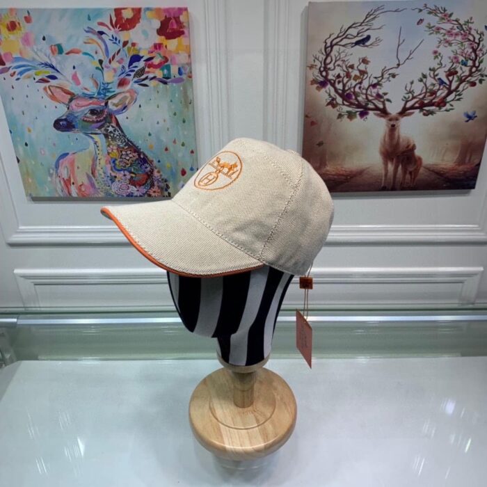 HERMES LOGO CANVAS CAP BEIGE ORANGE
