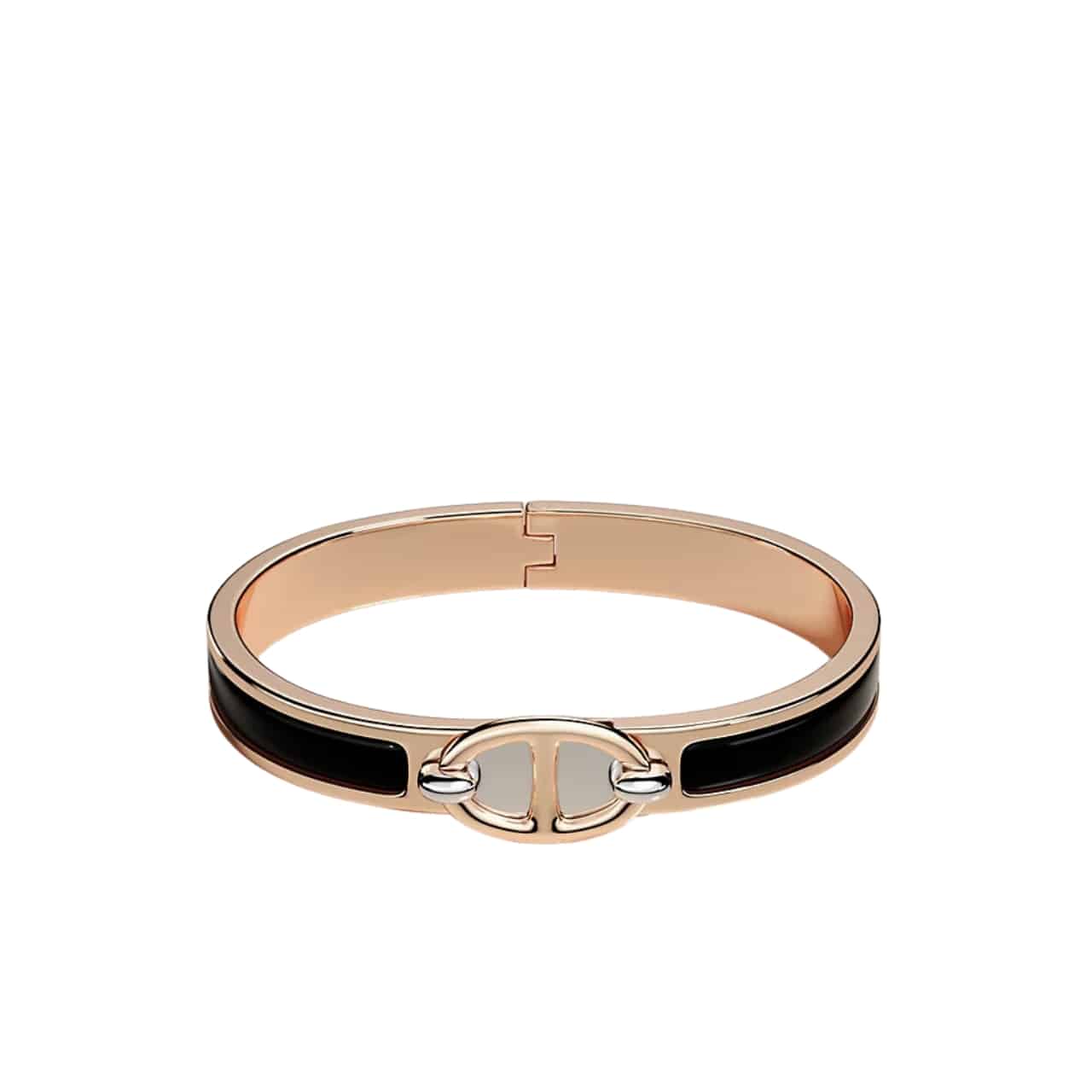 Hermes Mini Clic Anchor Chain Bracelet Rose Gold Tone With Black