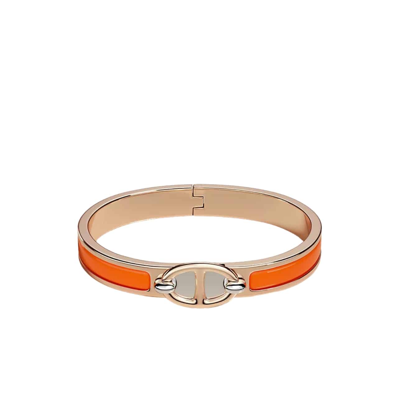 HERMES MINI CLIC ANCHOR CHAIN BRACELET ROSE GOLD TONE WITH ORANGE H209000FO8APM