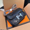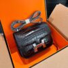 Hermès//Mini Constance 19 Shiny Alligator Palladium Hardware//Black//19cm