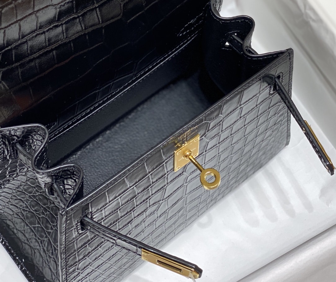HERMES MINI KELLY K20 GOLD TONED HARDWARE BLACK 20CM