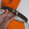 Hermes Mors H Belt Buckle And Reversible Leather Strap Gold Black 24Mm H077922Cc06