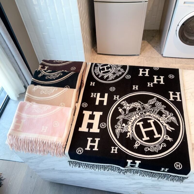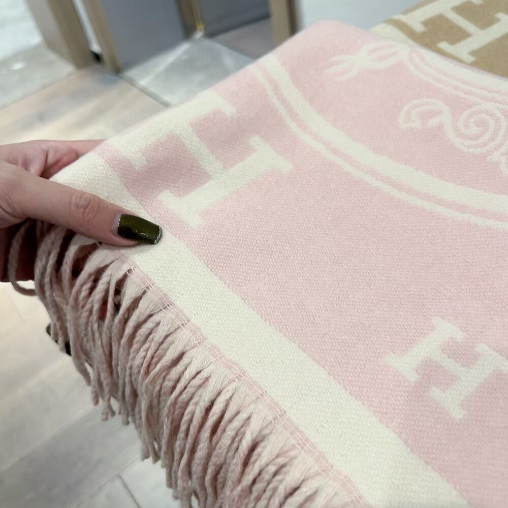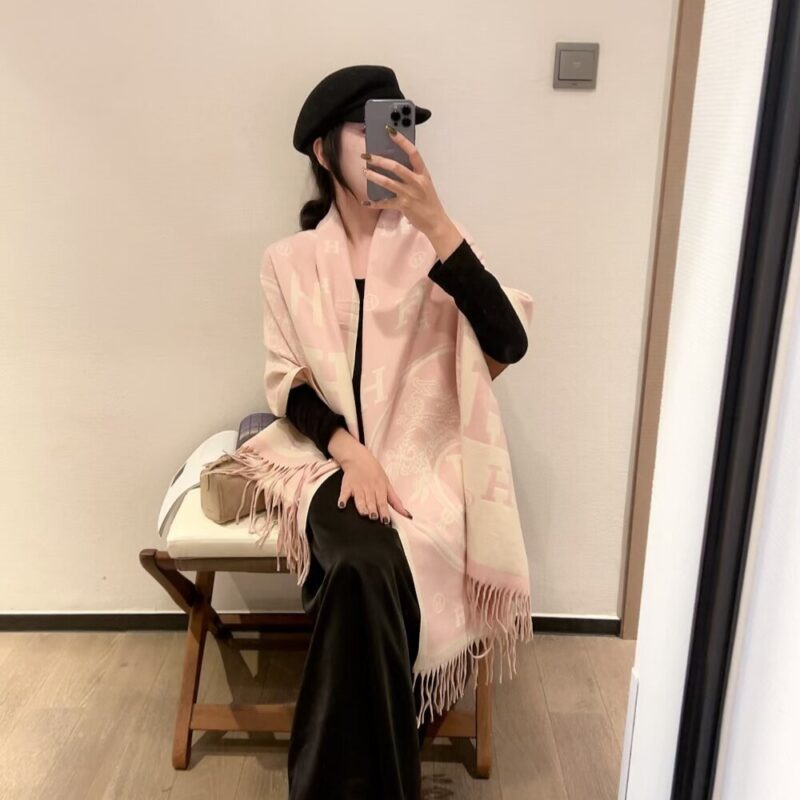 The Hermes Muffler H Logo Wool Shawl in Light pink is a sophisticated accessory crafted from a blend of wool and cashmere for exceptional warmth. It features a striking jacquard-woven design with large “H” logos and the iconic Caleche motif, finished with delicate fringed edges. This versatile 180cm piece can be styled as a classic scarf or a refined shawl, making it a timeless statement for any cold-weather wardrobe.